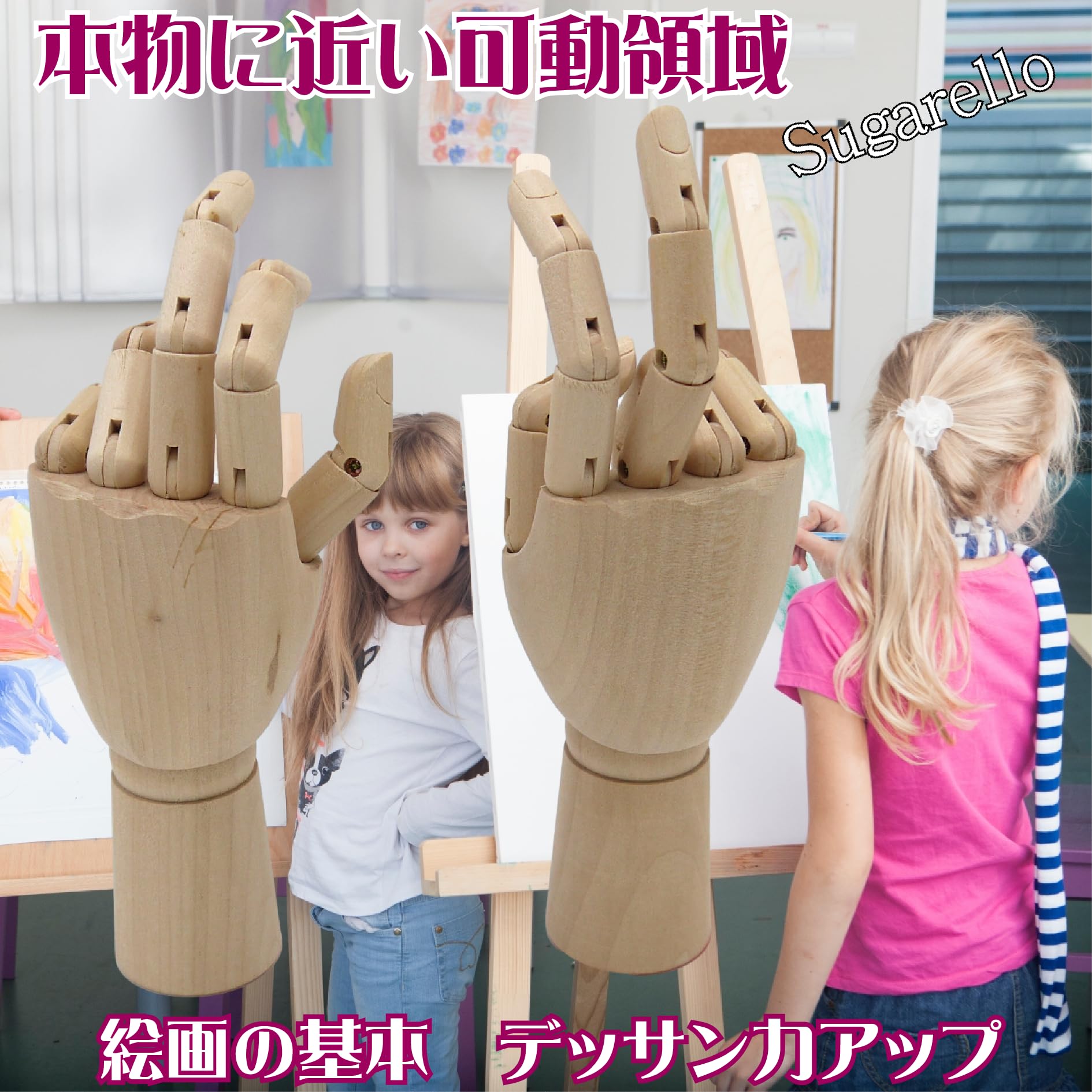 Sugarello ハンドマネキン ハンドモデル デッサン人形 天然木製 ロータス材 関節可動 デッサンモデル 子供 手 小道具 模型 インテリア 絵画 イラスト オブジェ (右手)
