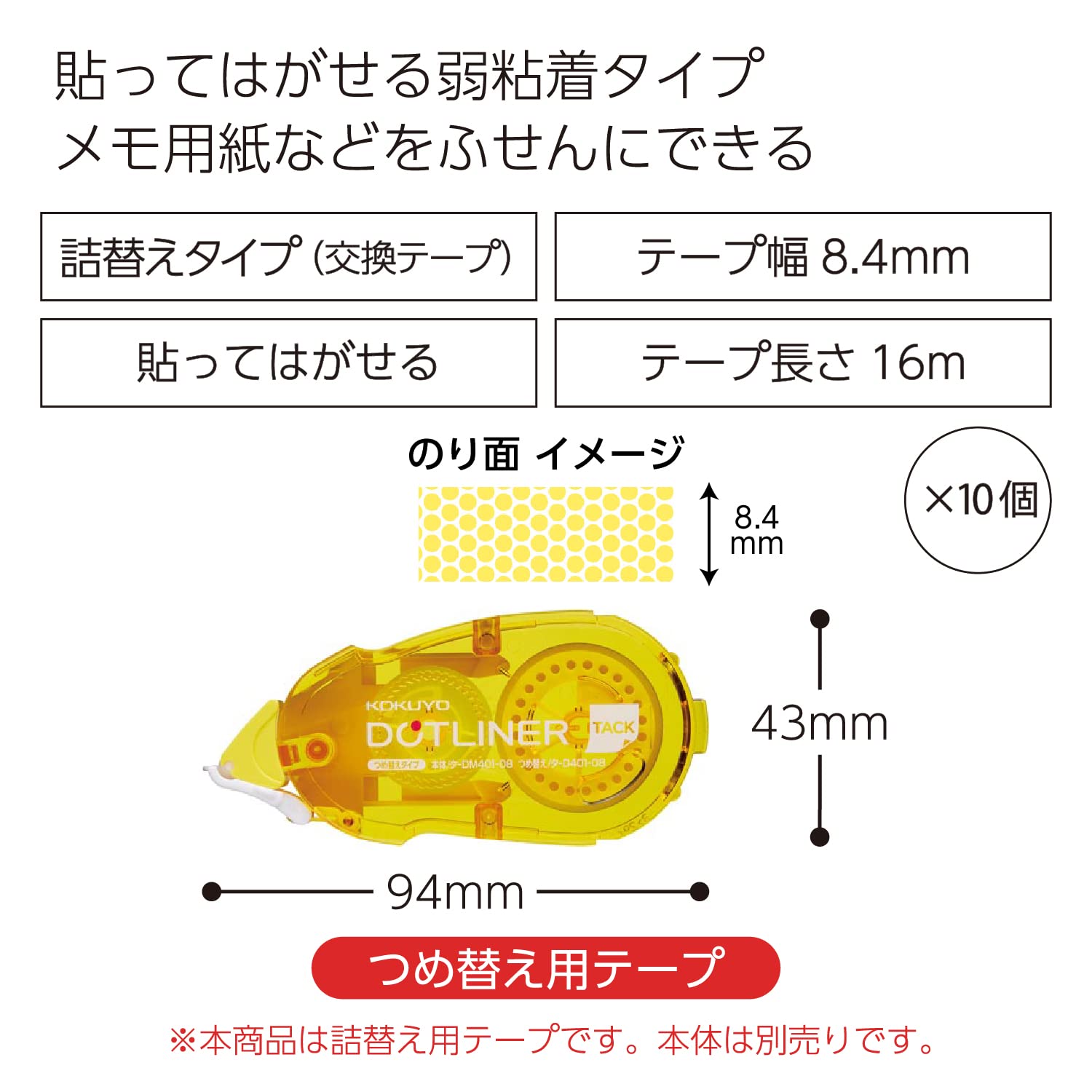 コクヨ テープのり のり ドットライナー 詰め替え 弱粘着 貼ってはがせる 10個 タ-D401N-08X10