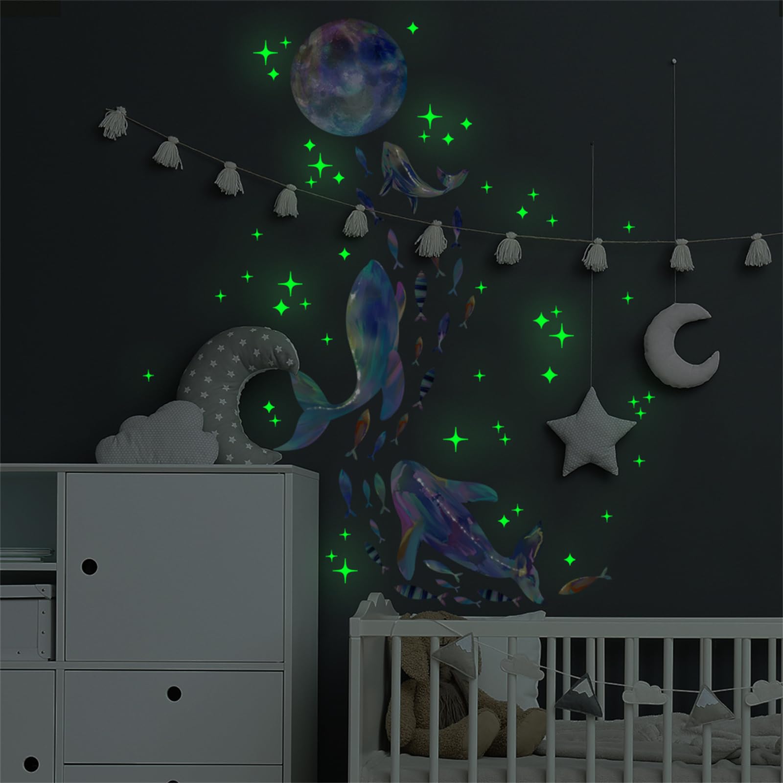 WOHAHA ウォールステッカー 海の魚 クジラ マリンライフ ダズルカラー 暗闇で光る おしゃれ 動物 スター 月 深海魚 ウォールシール 水中世界 壁に貼るステッカー 防水 すてっかー 部屋 room wall stickers decor 御洒落 ウォールデコ | geisha Cat*