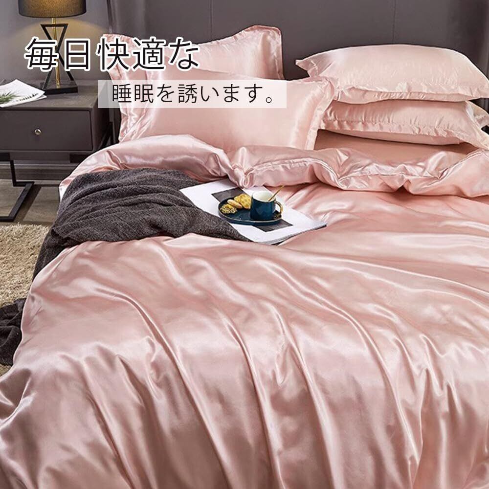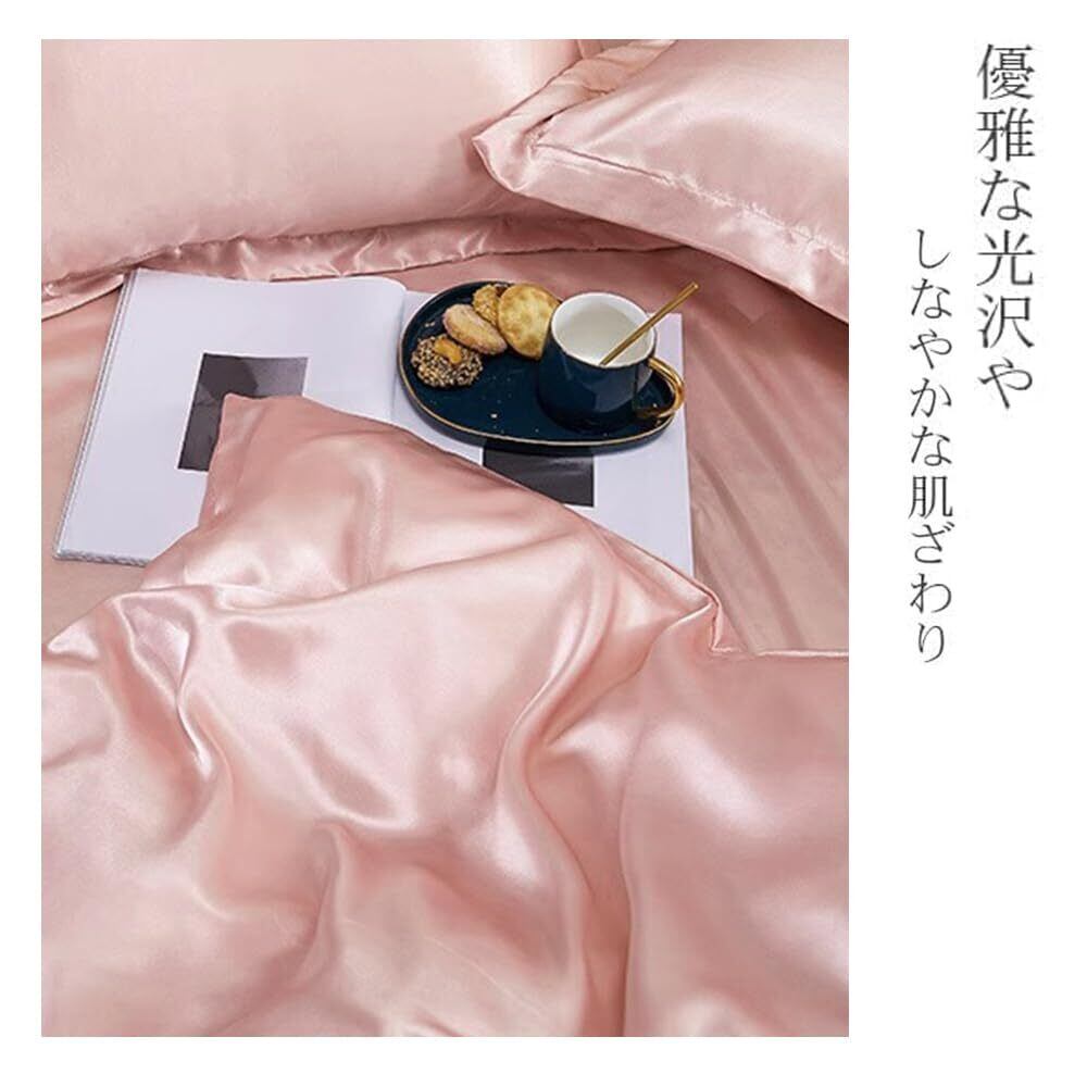 布団カバー セット 涼感 おしゃれ ツルツル ボックスシーツ 冷感 夏用 シルクみたい サテン ツヤ 光沢 シングル セミダブル レーヨン 柔らか 可愛い 布団カバーセットフリル付き 優しい 肌触り 寝具 掛布団 おしゃれ 北欧 まくら 丸洗いOK 和式 洋式(ピンク、シングル3点セット)