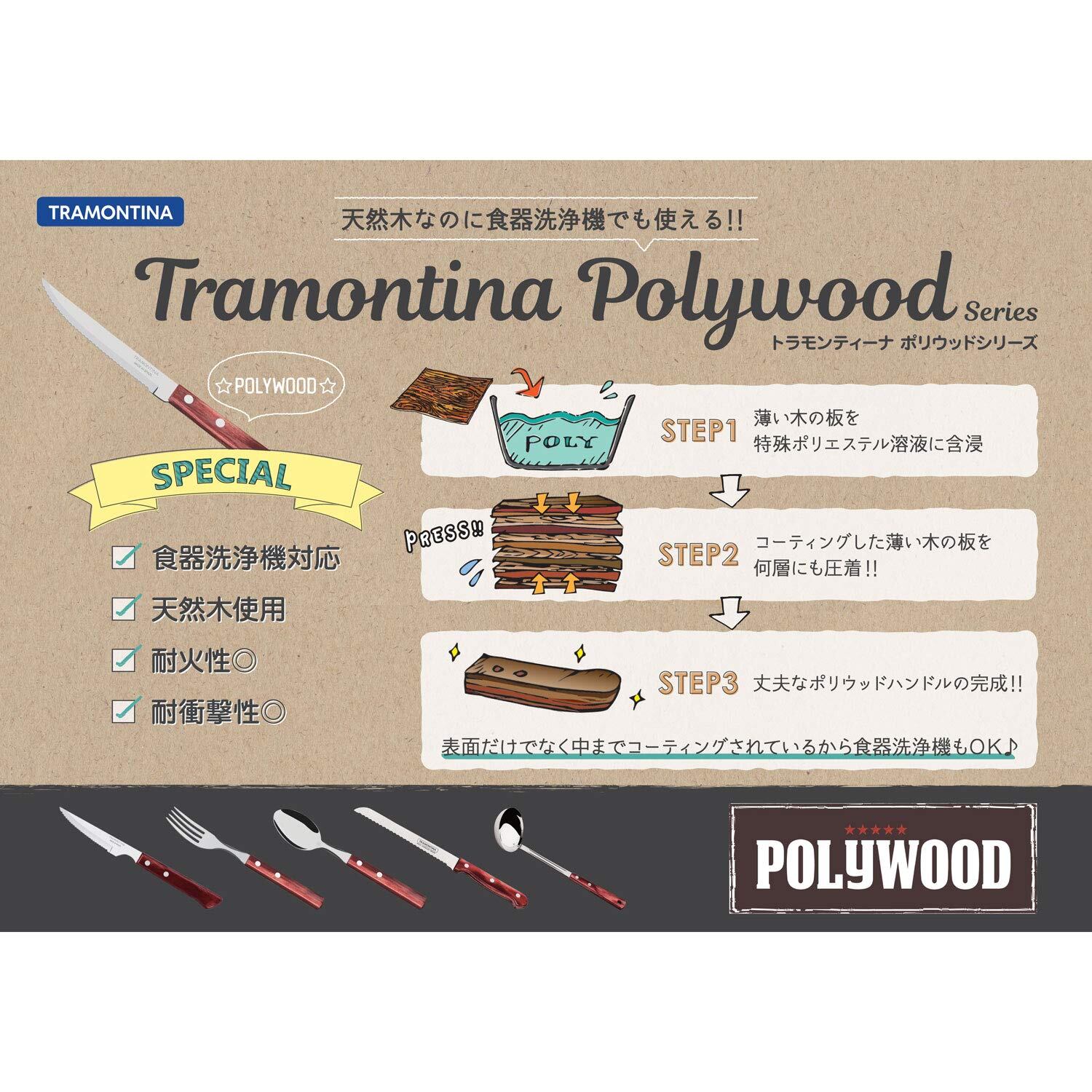 トラモンティーナ 木柄カービングフォーク ポリウッド 30cm レッド 食洗機対応 耐久性 天然木 ブラジル製 21192/170 TRAMONTINA