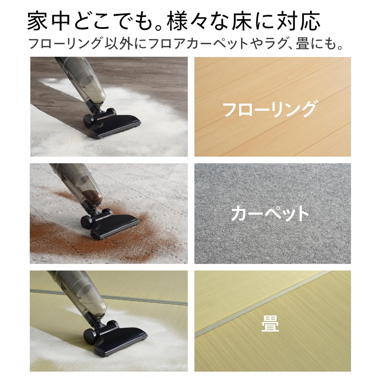 【家中どこでも。様々な床に対応】フローリングはもちろん、畳や毛足の長い絨毯に潜んだごみもしっかり吸い取ります。
