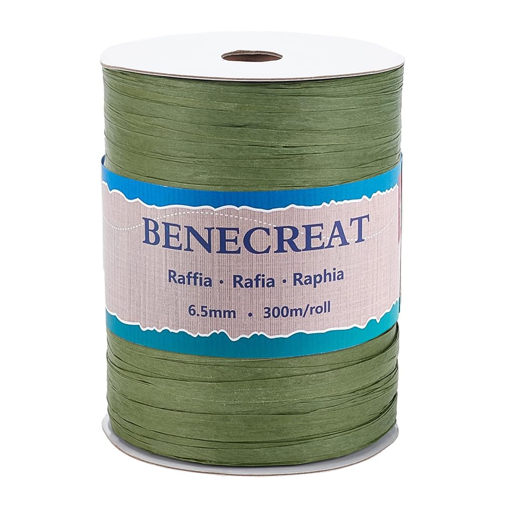 BENECREAT 全長300m幅約6.5mm ラフィア紙リボン 緑 ソフトペーパーラフィアリボン ギフト包装 花束装飾 バレンタインデー ギフトラッピング グリーン