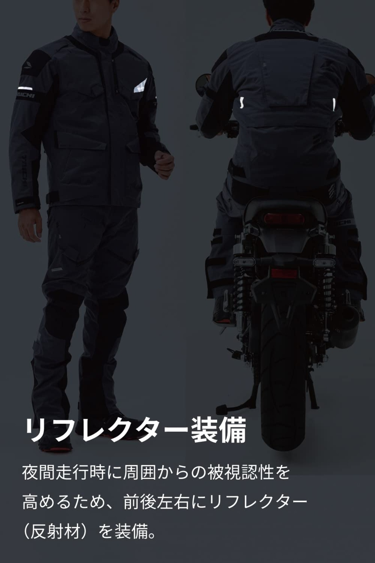 全方向から視認できるリフレクター(反射材)と肩・肘のCE Lv.2プロテクターにより高い保護性を確保しています。