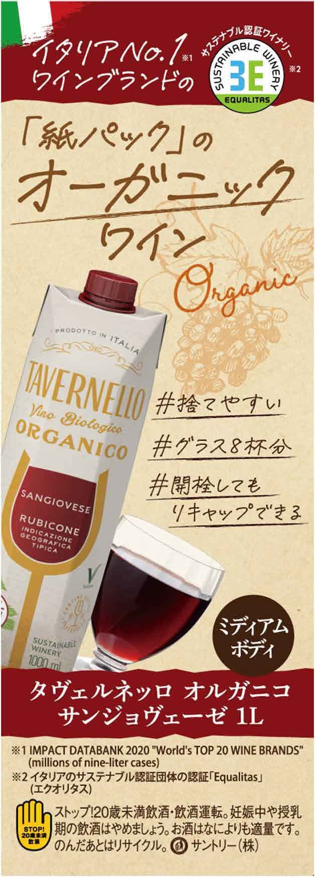 世界No.1イタリアワインブランド・タヴェルネッロからよりサステナブルに、気軽に楽しめるオーガニックワイン新発売
