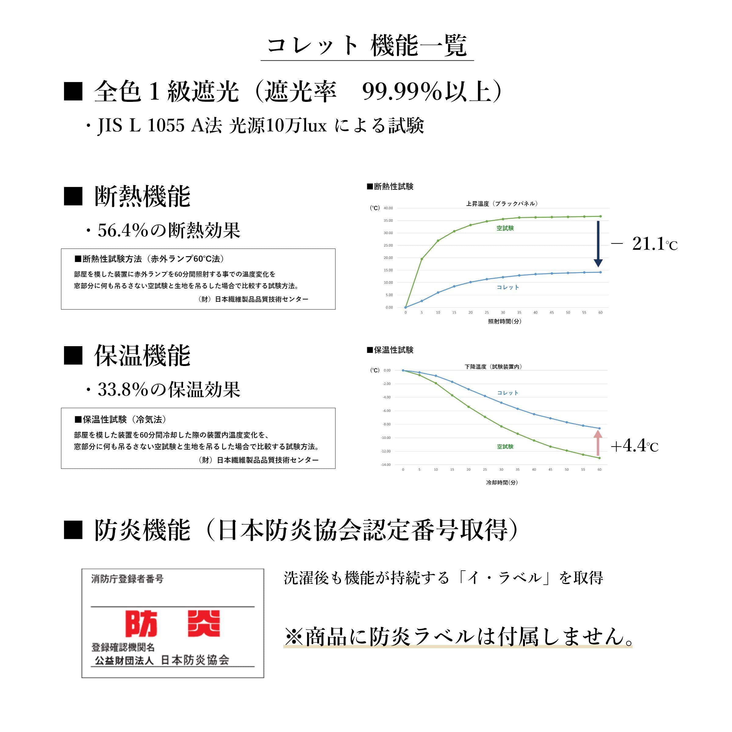 【商品特徴】防炎・1級遮光・断熱・保温効果の持つ生地のカット販売となります。長さ1・2・3mでカットされた生地をお送りします。【生地特徴】生地はダブルサテンの組織で、組織の中に黒色の糸を織り込んでいます。表裏同じ表情となります。遮光1級(99.99%以上)、断熱効果(56.4%)・保温効果(33.8%)・防炎加工(イ・ラベル)機能で安心です。【注意事項】遮光1級生地ですが、全く透けない訳ではございません。強い日差しでは少し光が透けてぼんやりと明るくなります。濃色の方がより透けにくいので、気になる方は濃色を選択してください。生地は手作業でカットしていますので、少し切り口ががたついたり、糸がほつれたりします。あらかじめご了承ください。