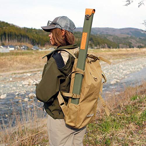 ・両サイドにはロッドケースを装着できるように2つのバンドとメッシュポケットがついています。ペットボトルも入ります。