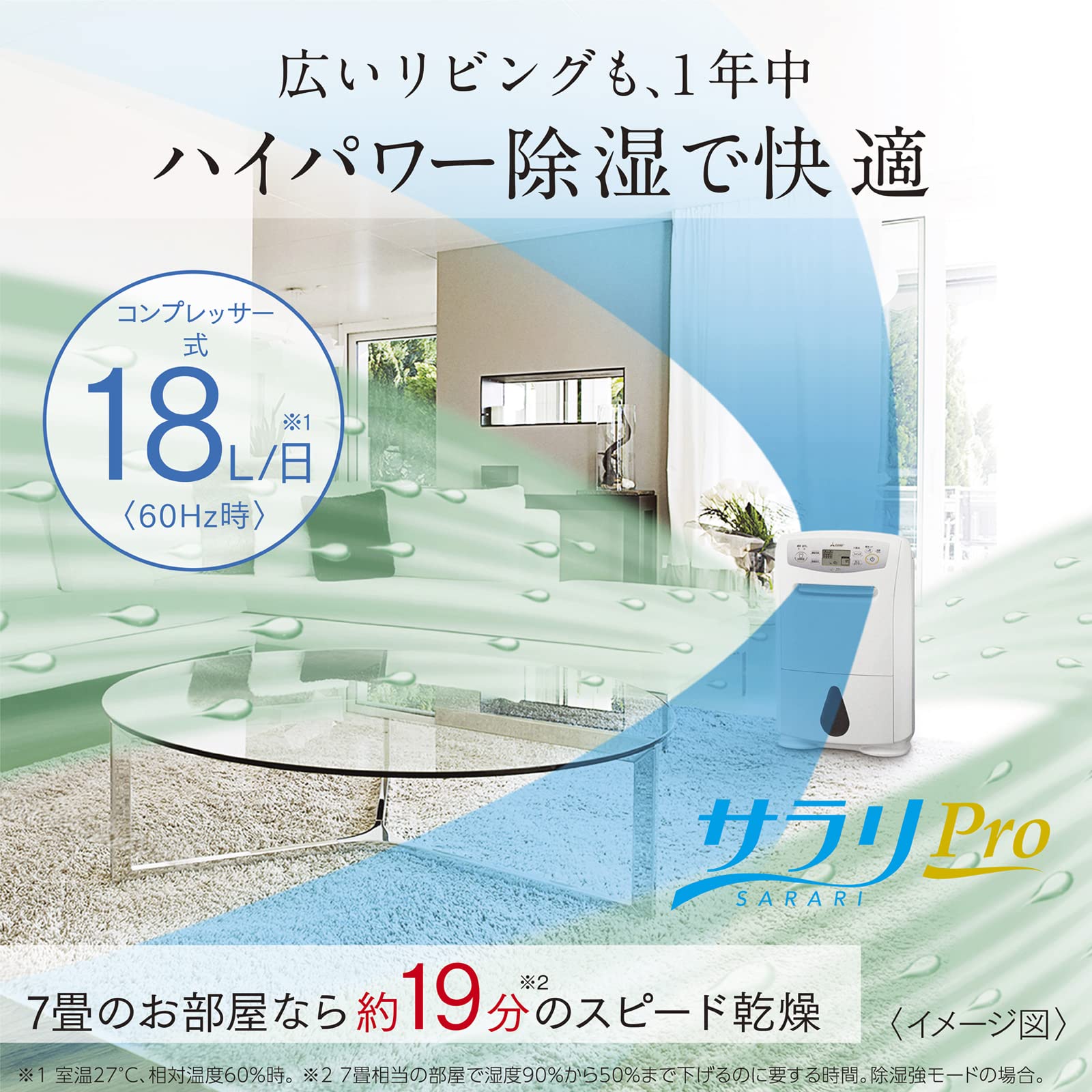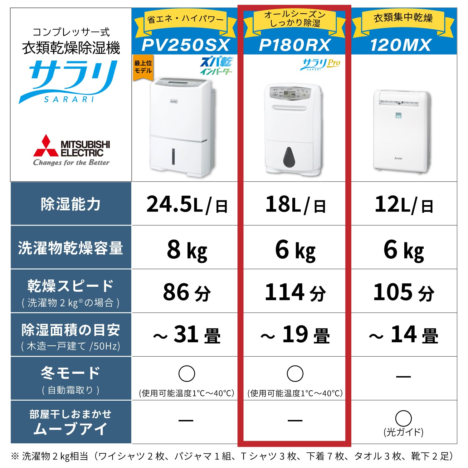Mitsubishi 三菱電機 衣類乾燥除湿機 サラリPro 18L コンプレッサー式 【大容量ハイパワー】 花粉症 冬モード(室温 1℃から除湿OK) 連続排水OK 停電復帰機能 MJ-P180RX-W
