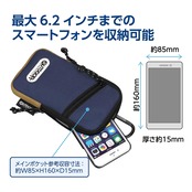 最大W85×H160×D15mm(5.8~6.2インチクラス)のスマートフォンや、手帳ケース入りの4.7インチクラスのスマートフォンの収納も可能。