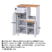 シンプルで置きやすいキッチンカウンター、トレーは引きだすことができ、レンジや炊飯器の収納にピッタリ、移動に便利なキャスター付きです。ホワイト色が清潔感のあるデザインでシンプルなデザインで他の家具に合わせやすくなっています。