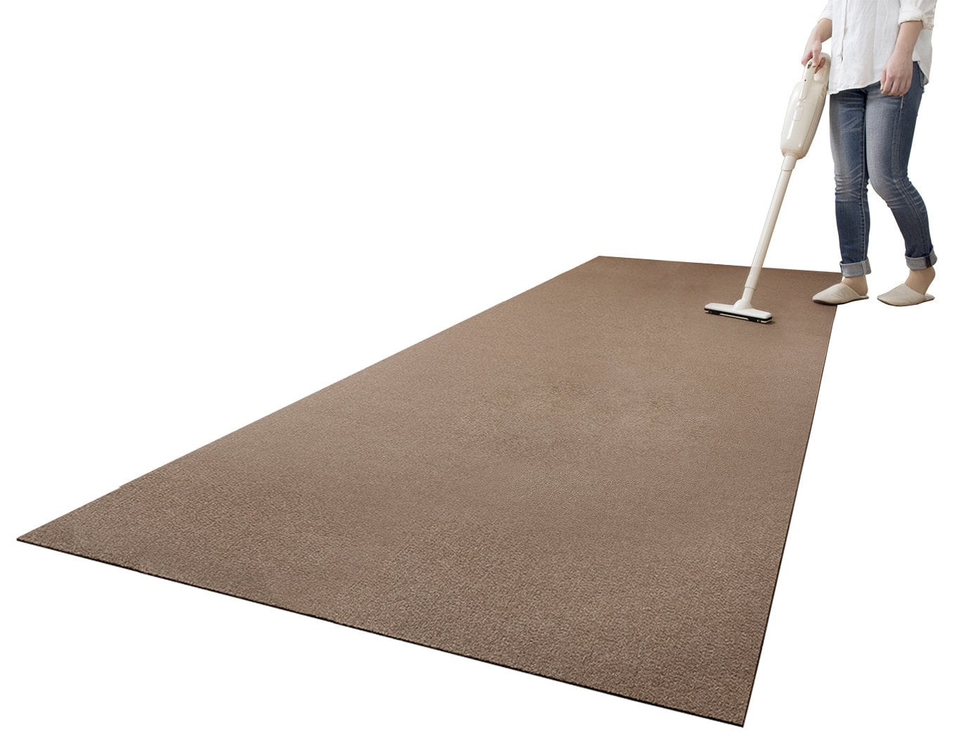 Sanko サンコー キッチンマット はっ水 洗える ロングマット 台所 廊下 日本製 おくだけ吸着 フラットタイプ 90×240cm ブラウン KH-87