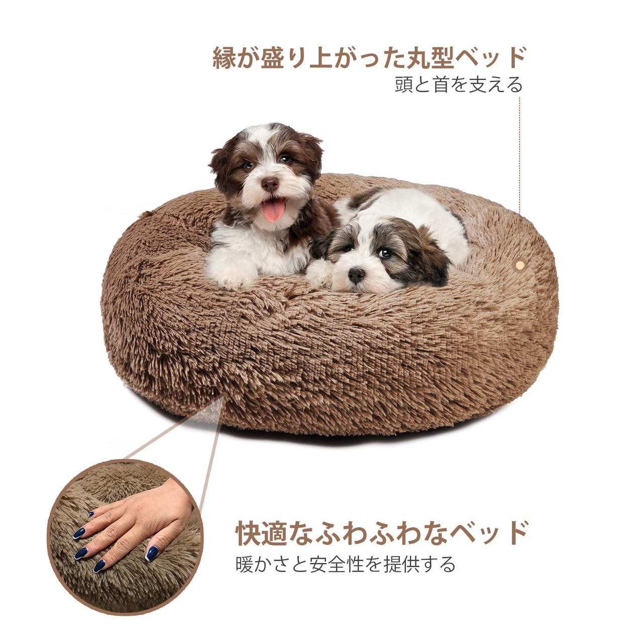 *ユニークな設計:丸型の設計です。ペットベッドの直径40cm/50cm/58cm/70cm/76cm/90cm、高さ約15~20cm。ふわふわして暖かい4cm長毛。