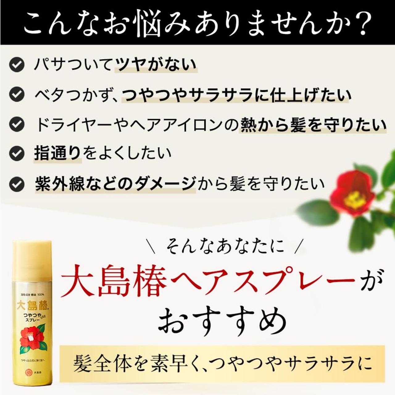 椿油100%のヘアスプレー。