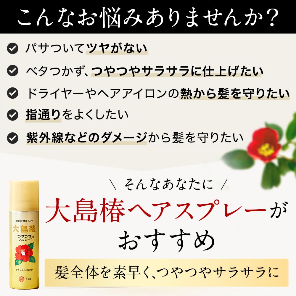 大島椿 ヘアスプレー 椿油100% スタイリング剤 髪 ツヤ出し 艶出し 仕上げ用 まとまる さらさら 固めない 無香料 140g おまけ付
