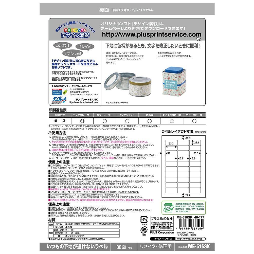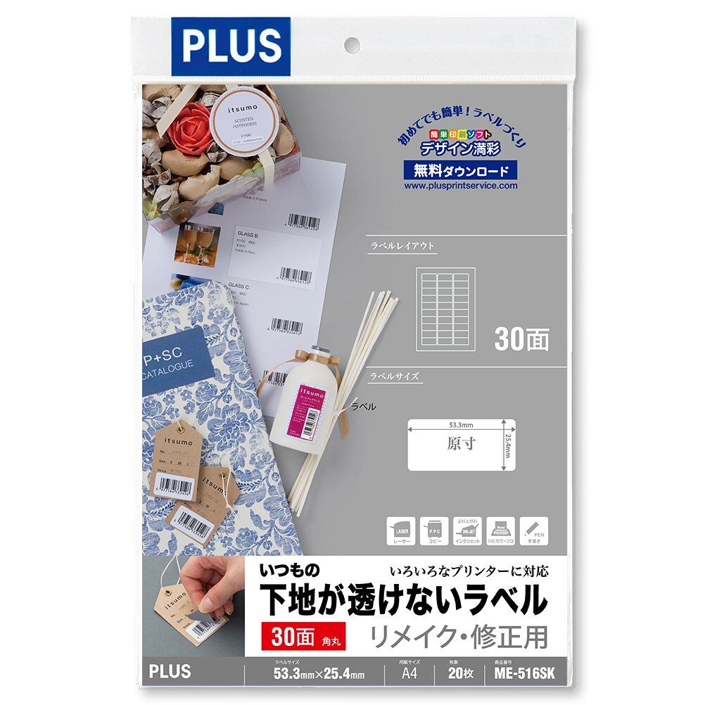 プラス ラベル いつもの下地が透けないラベル 修正 A4 3×10片 30面 20枚 46-177