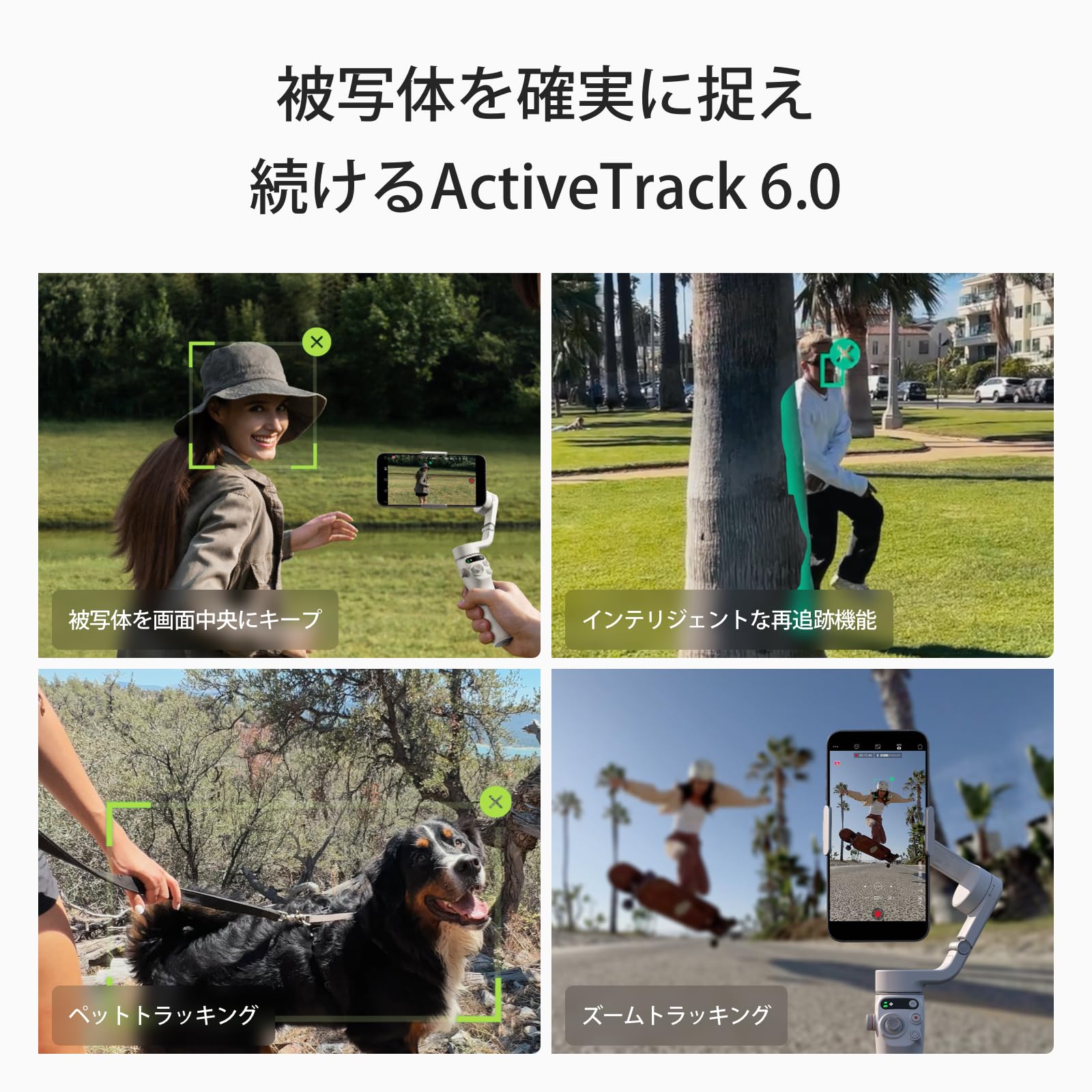 [アップグレードしたActiveTrack 6.0で対象を中心に] - 最新のトラッキング技術により、被写体を選択すると、ジンバルが自動でジンバルをトラッキング。素早くダイナミックな動きで撮影したり、被写体が何かで遮られたりしても、トラッキングを継続します。