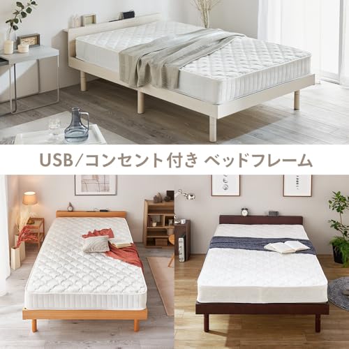 アイリスプラザ ベッド ベッドフレーム 2口コンセント・USBポート付き 棚付き 3段階 高さ調整 すのこ セミダブル ウォルナット