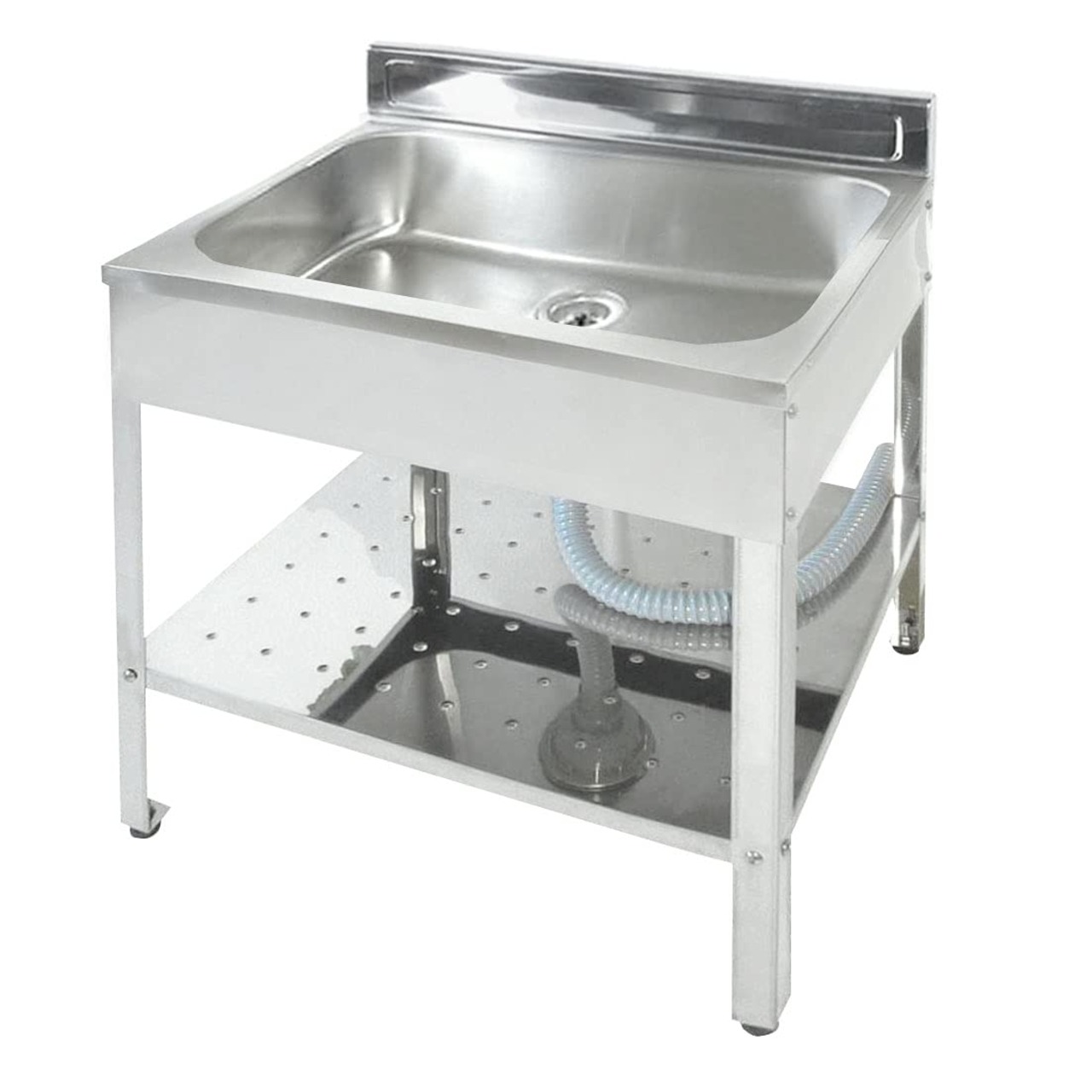 材質:本体・棚板:SUS430 パッキン:合成ゴム アジャスターネジ部:スチール アジャスター皿部:ポリエチレン 排水栓:ABS樹脂 ホース:塩化ビニール(80cm)