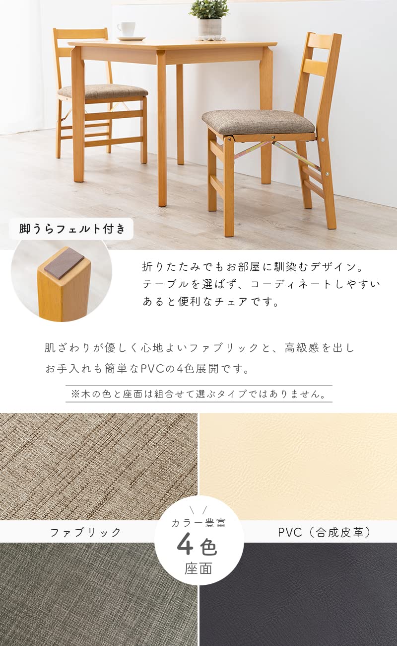 萩原 折りたたみ ダイニングチェア セット 2脚 完成品 食卓 椅子 コンパクト スリム モダン 補助椅子 幅42×奥行48×高さ76 座面高43.5 ナチュラル×ベージュ VC-7598NABE | geisha Cat*