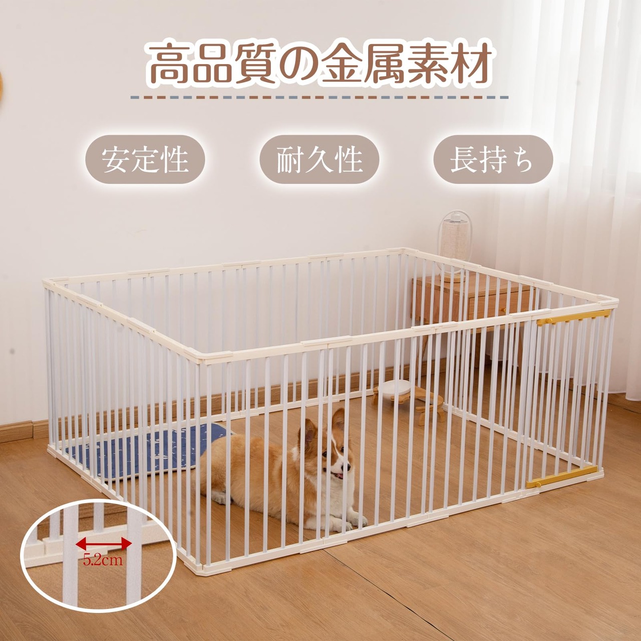 設置簡単:組み立て、お手入れ簡単 コネクタで軽量タイプのパネルをジョイントするだけなので、女性の飼い主さんでも、短時間で完成できます。