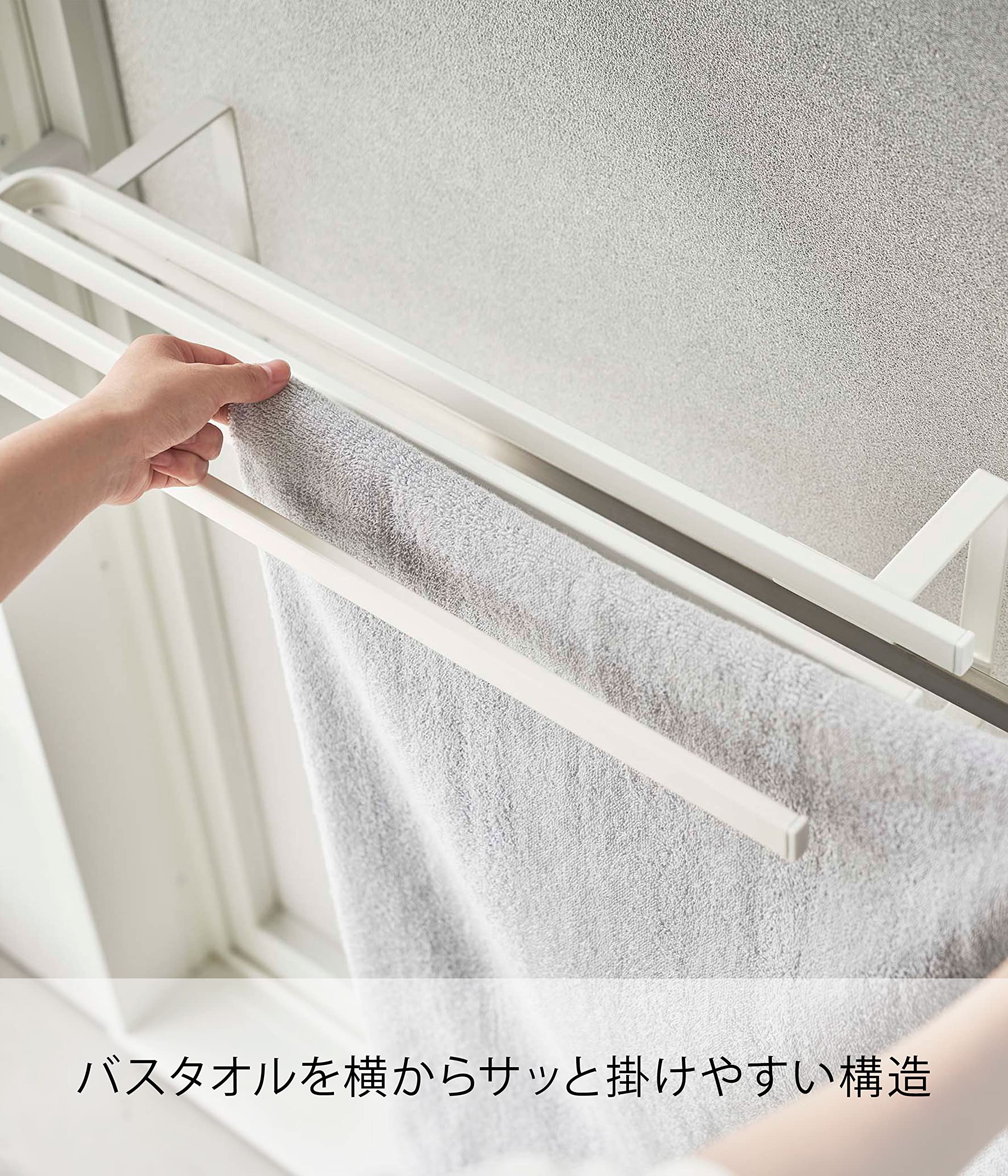 山崎実業(Yamazaki) 浴室扉 タオル掛け上 バスタオルハンガー ホワイト 約W57.5×D22.3×H17cm タワー tower バスタオルバー 簡単設置 パジャマ置き場 5999