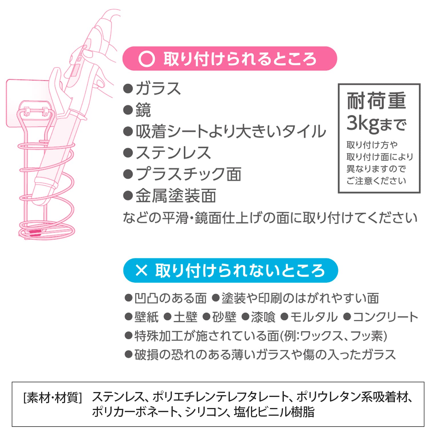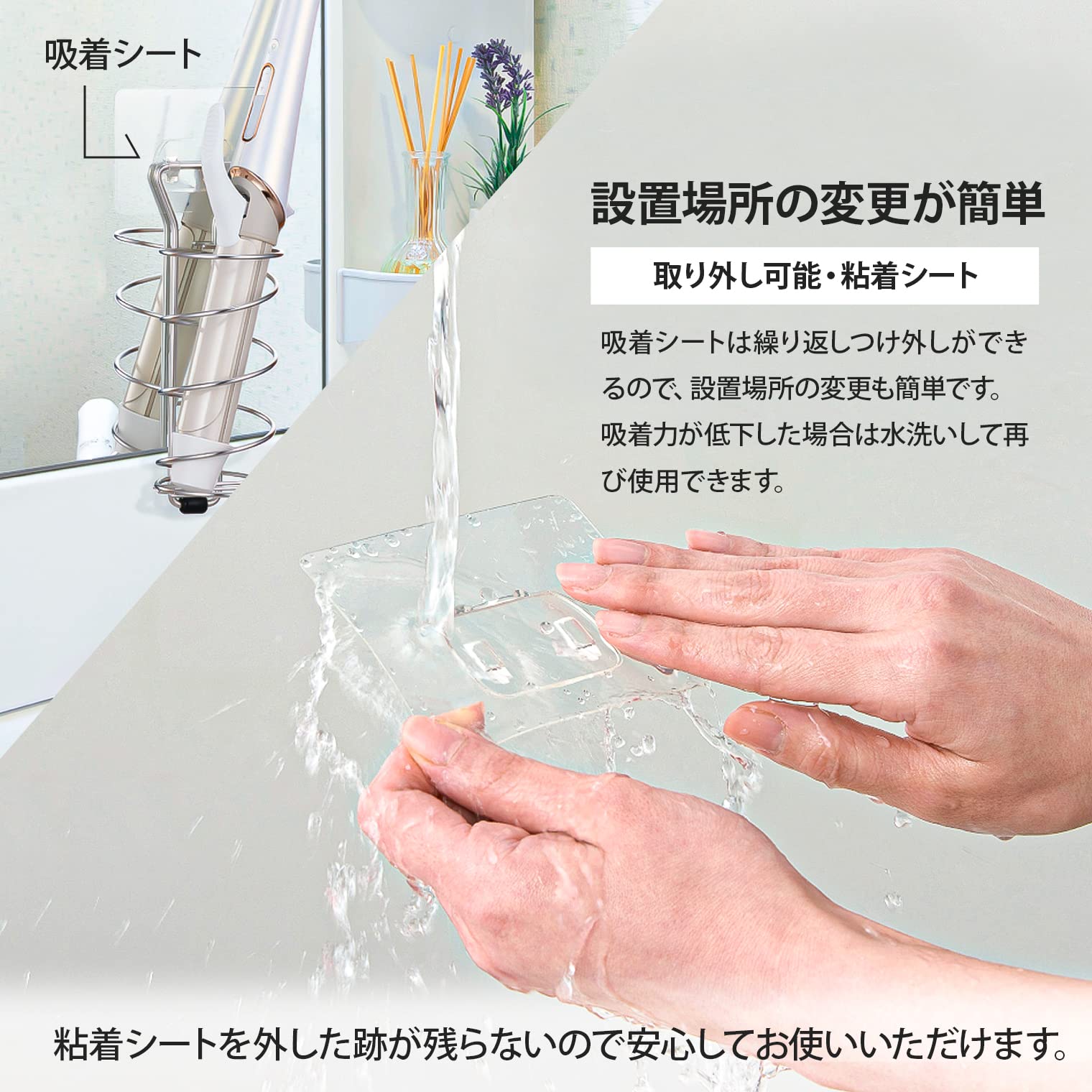 保持力に優れた吸着シートでしっかり固定できるヘアアイロンホルダー。