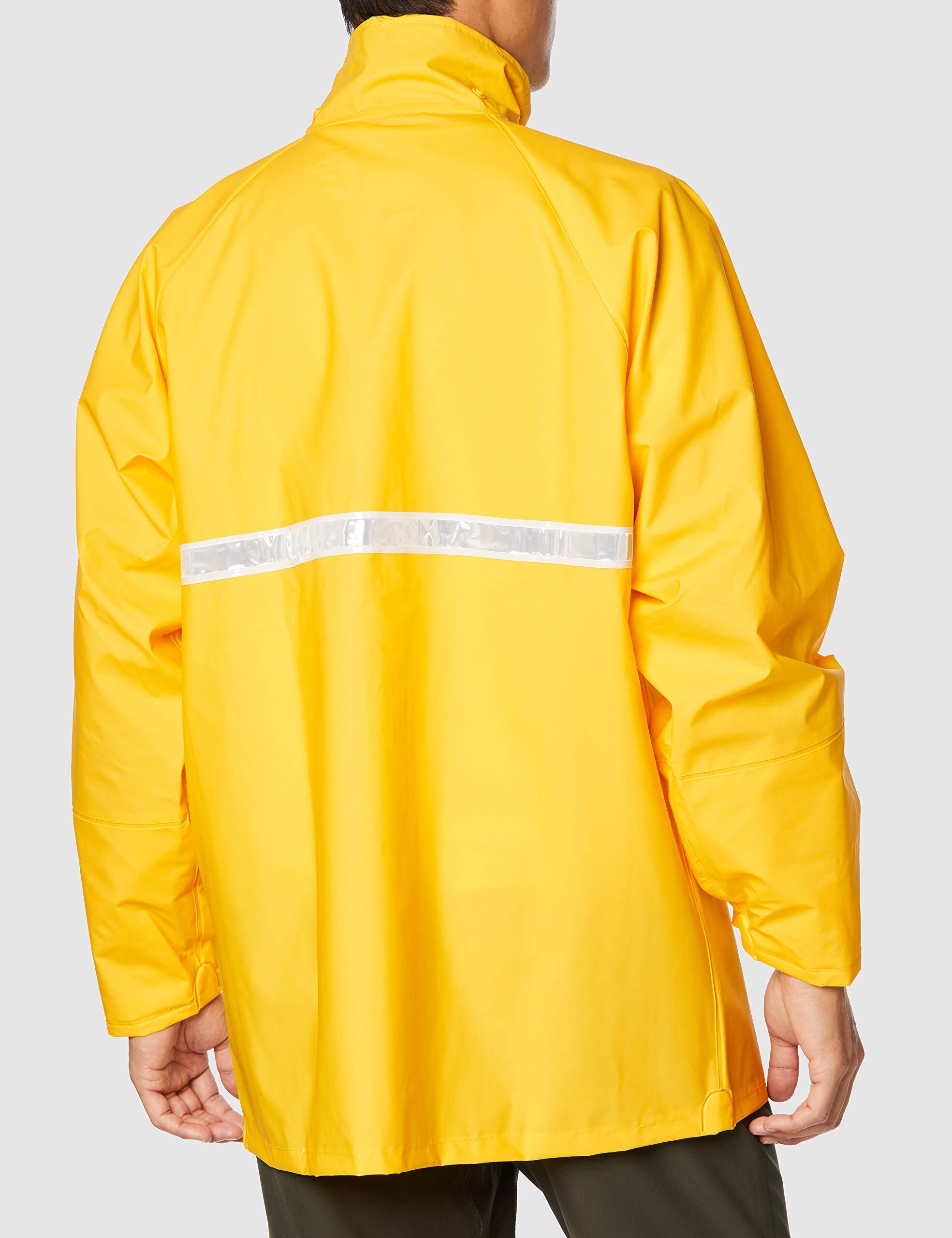 工場現場・林業・農作業など、ハードで厳しい環境での使用を考えて作られた上下別売りのジャケットです。取り外し可能なフードは通常フードとヘルメット用フードを付属しているので、状況に応じて使い分けが可能です。前面はクリアタイプになっているので良好な視界を保つことができ、安全性も確保。背面と左胸には反射テープと反射ワッペンを付属し夜間の視認性を高め前後からの安全性を考慮しています。袖口は手袋をした際も雨が浸入しにくいように、深めの二重袖に仕上げました。内側のゴムと外側のスナップボタンで、フィット感を高めています。裏面にはベト付きを緩和する前面平織りを採用し高い機能性を実現しました。