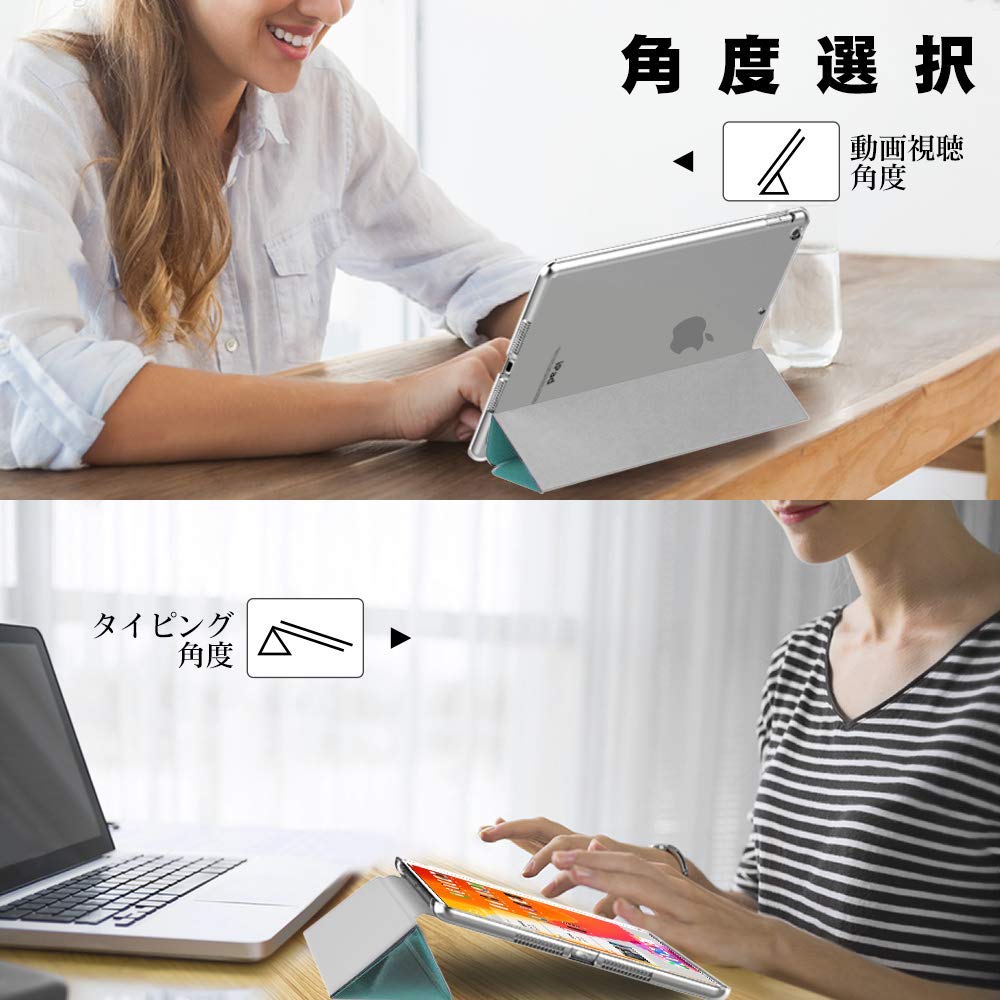 カバーを折れる仕様にデザインして、折巻きしてスタンドになれて、二つの置く角度調整できて、両手解放で動画観賞や、タイピング、ゲームなども快適にご利用頂けます。