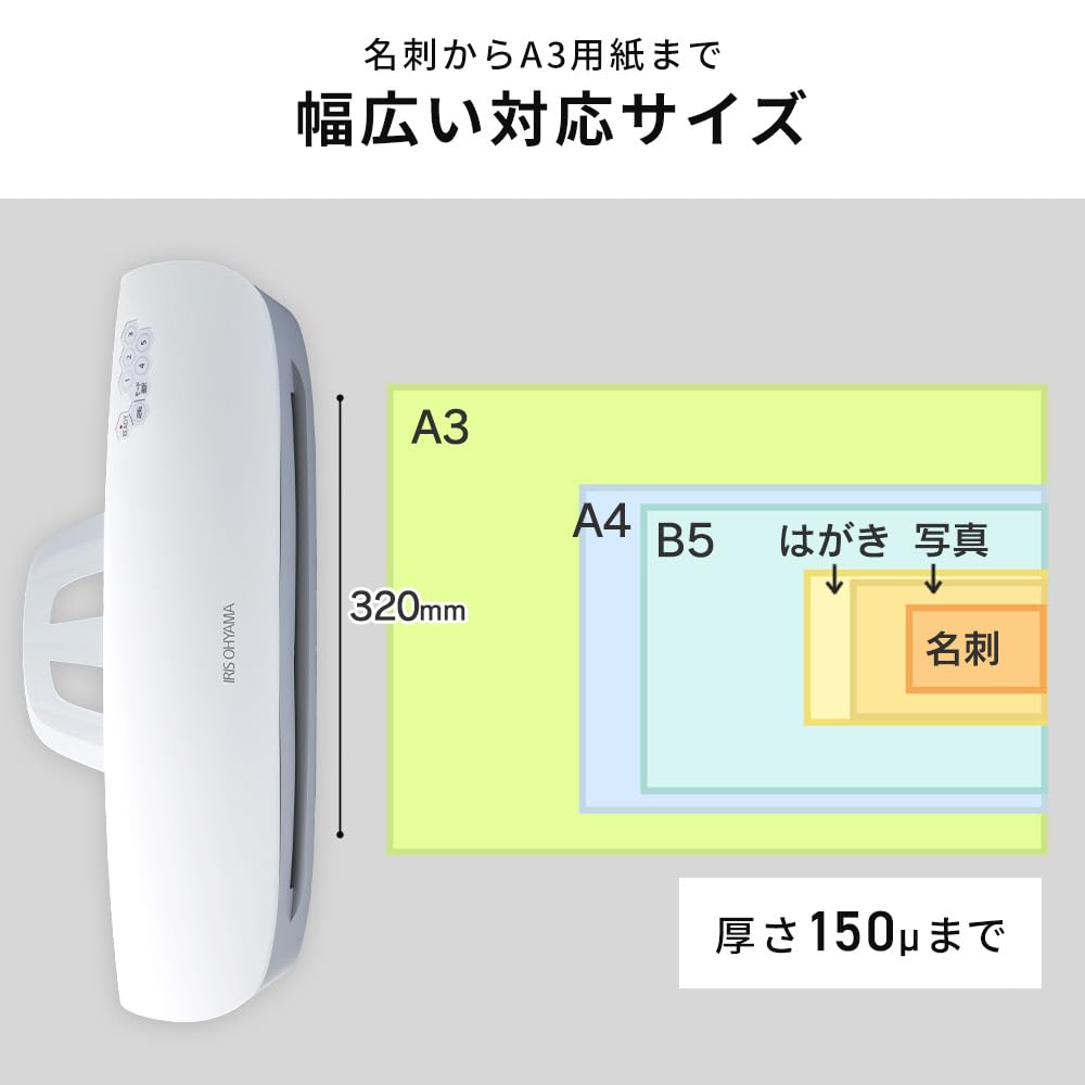 アイリスオーヤマ ラミネーター A3/A4対応 ウォームアップ時間2分 波打ち防止 温度調節機能付き 気泡なし LFA34AR ホワイト/シルバー