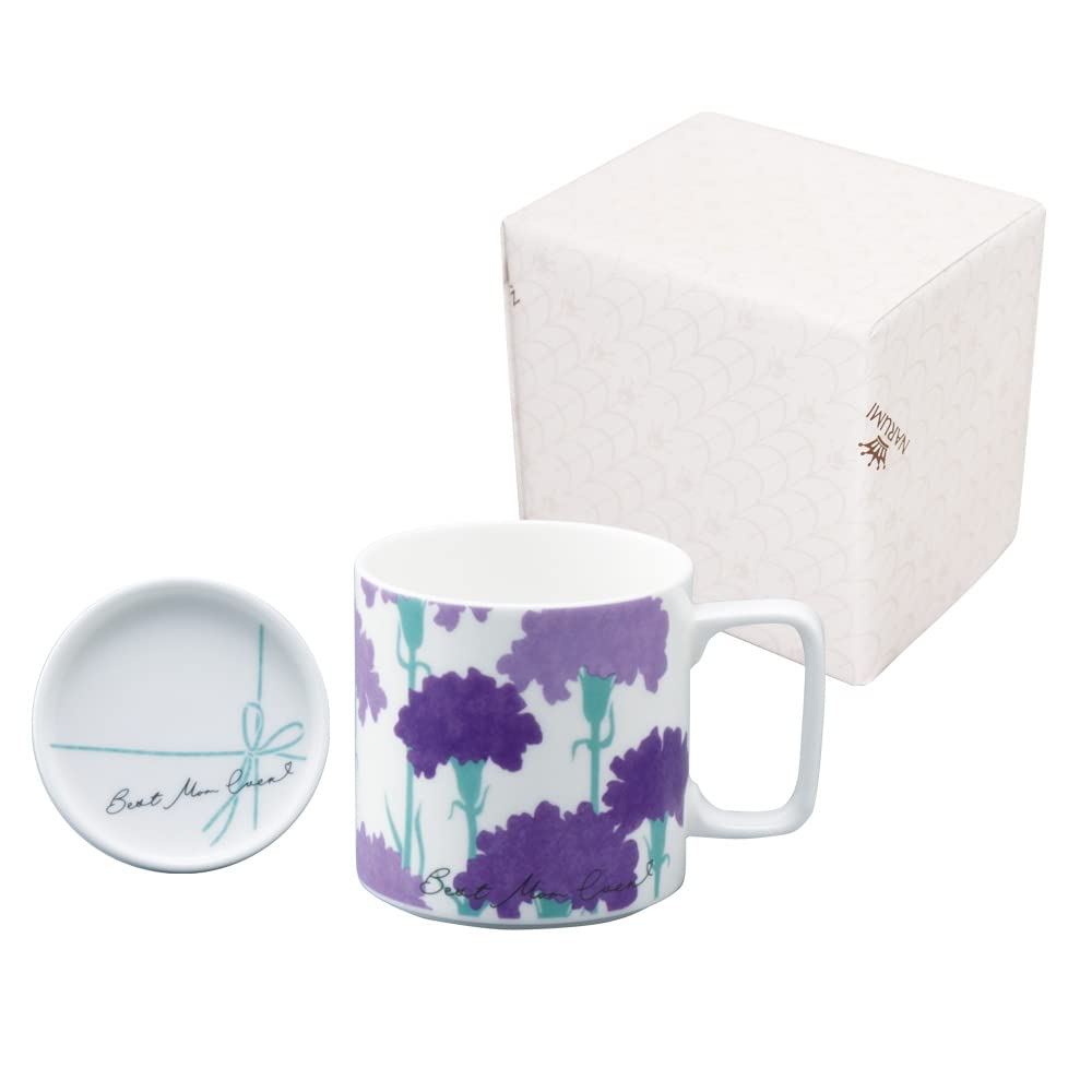 NARUMI(ナルミ) フタ付 マグカップ ダズンフラワー 290cc パープル 花柄 かわいい カーネーション 蓋付きマグカップ 贈り物 結婚祝い 母の日 プレゼント 電子レンジ温め 食洗機対応 ギフト箱入り ラッピング済 97199-23377AZ
