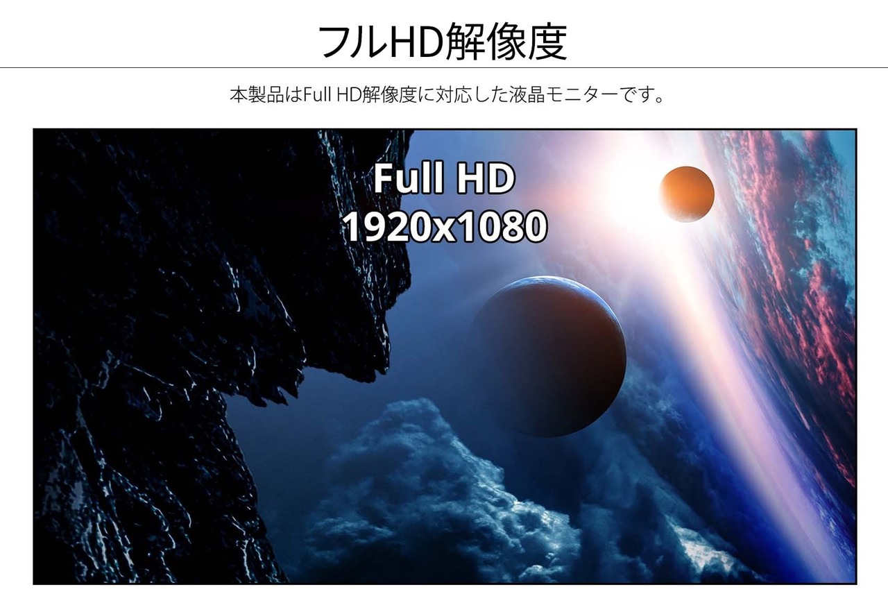23.8インチのIPS系パネルを搭載、使いやすいフルHD解像度(1920 x 1080)に対応した液晶モニターです。
