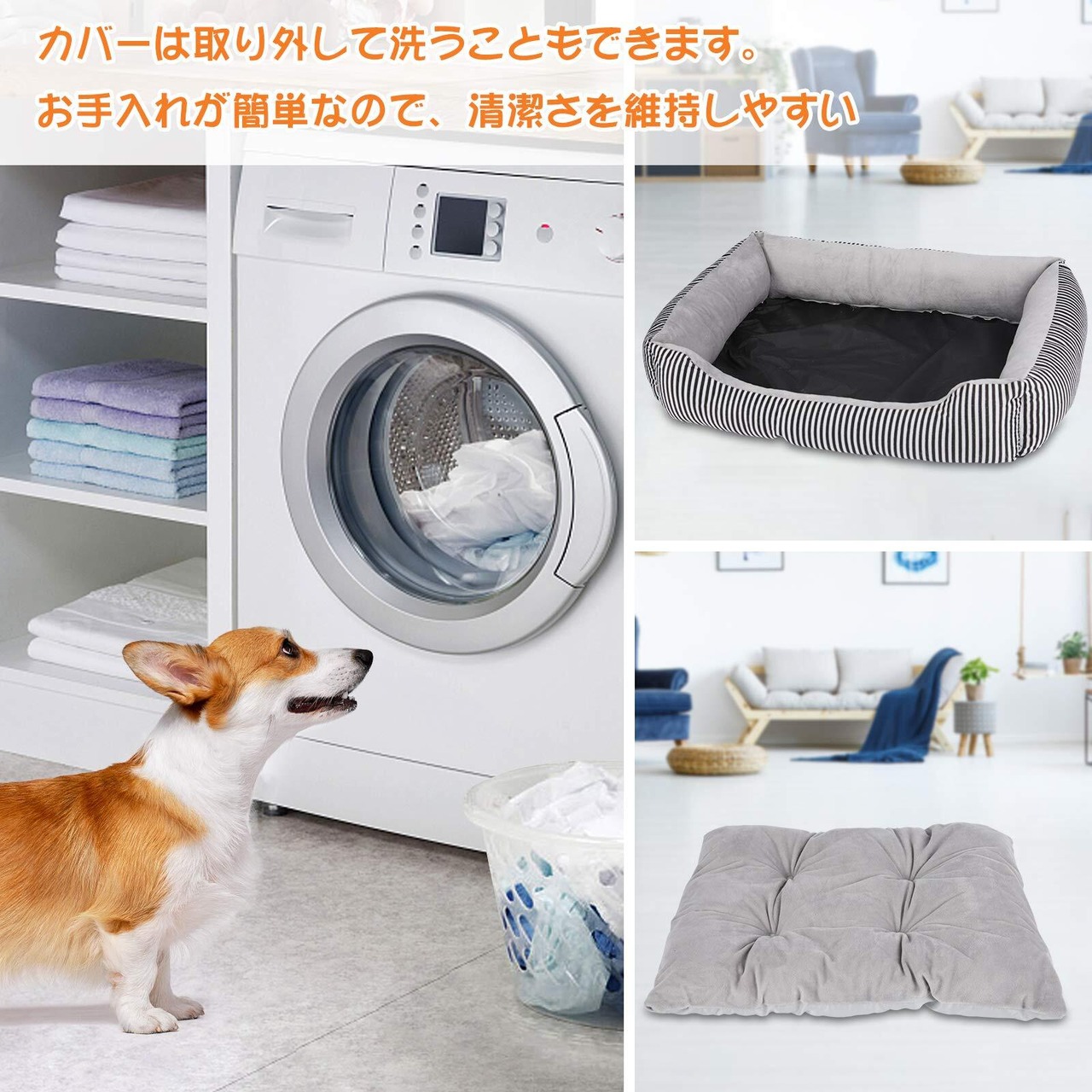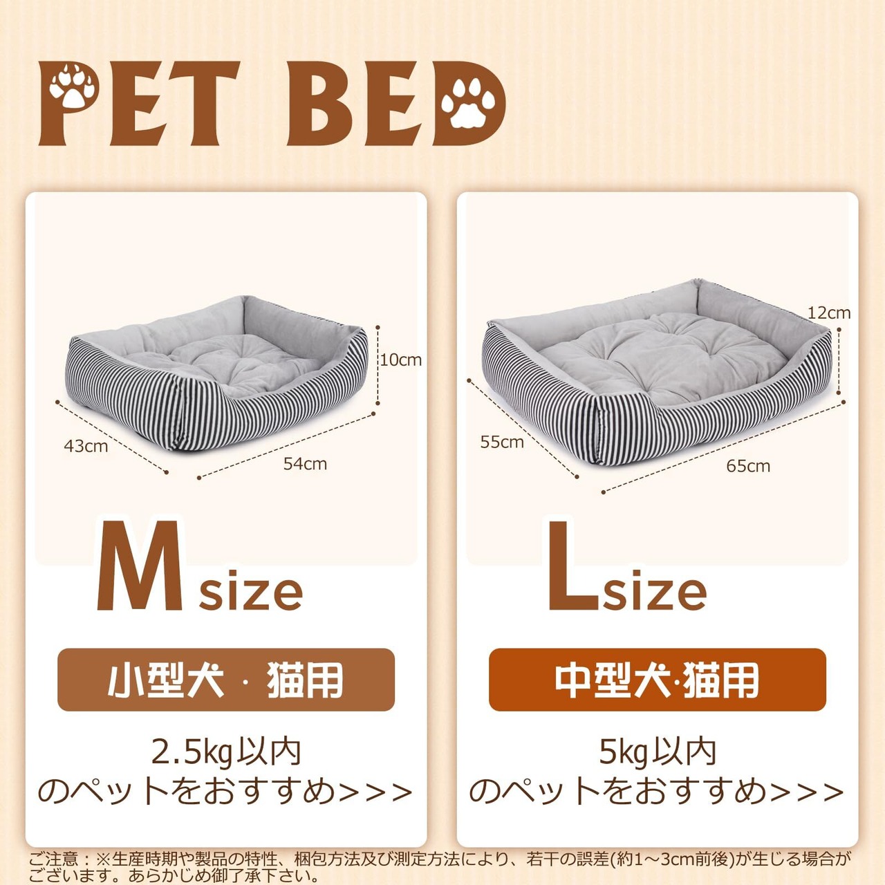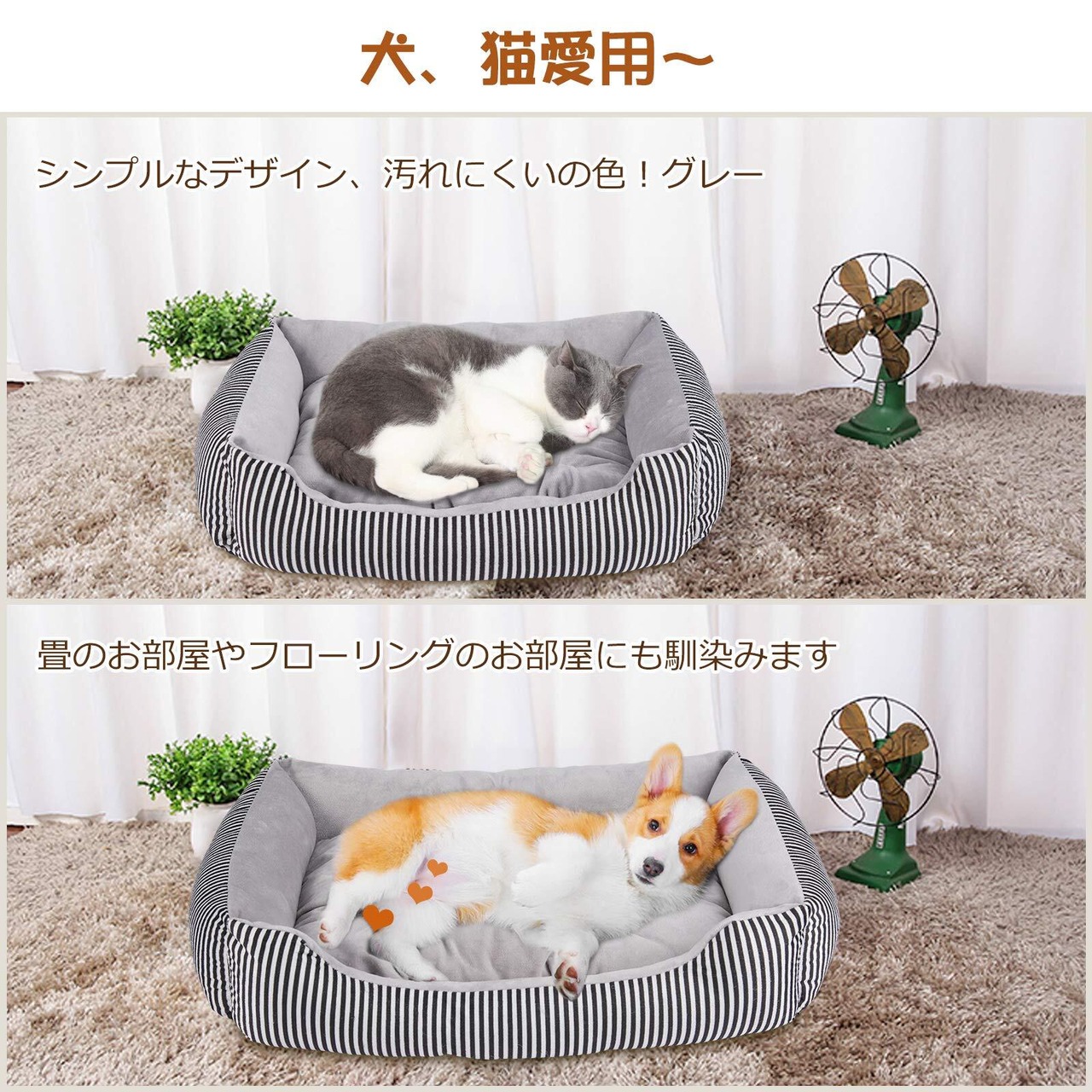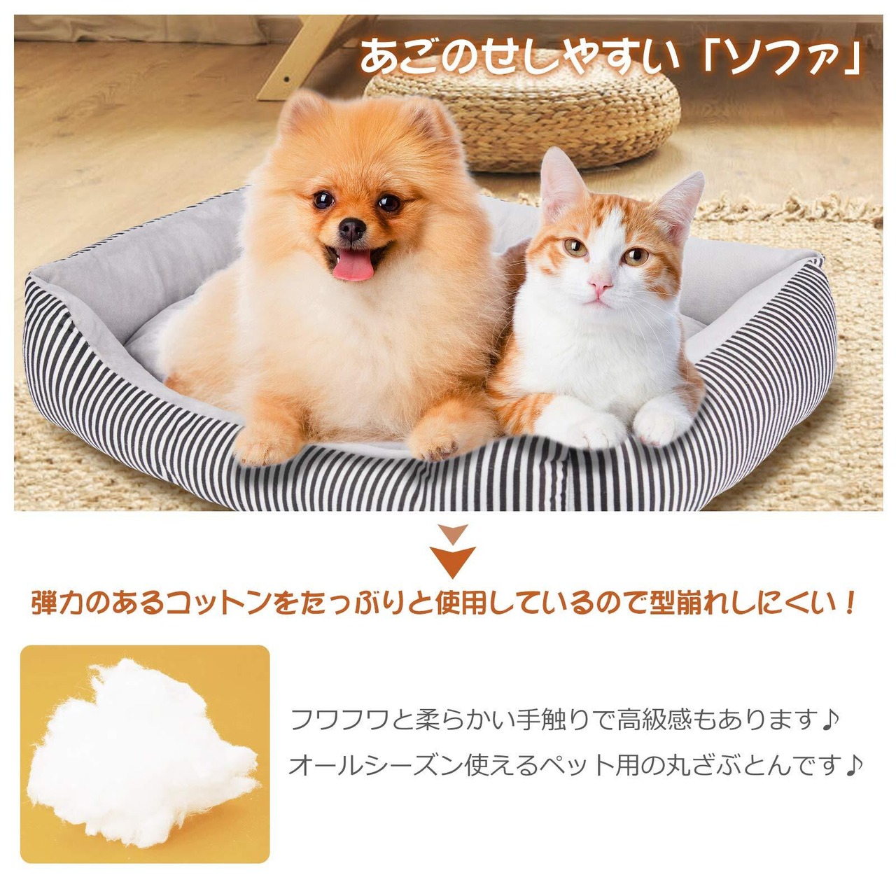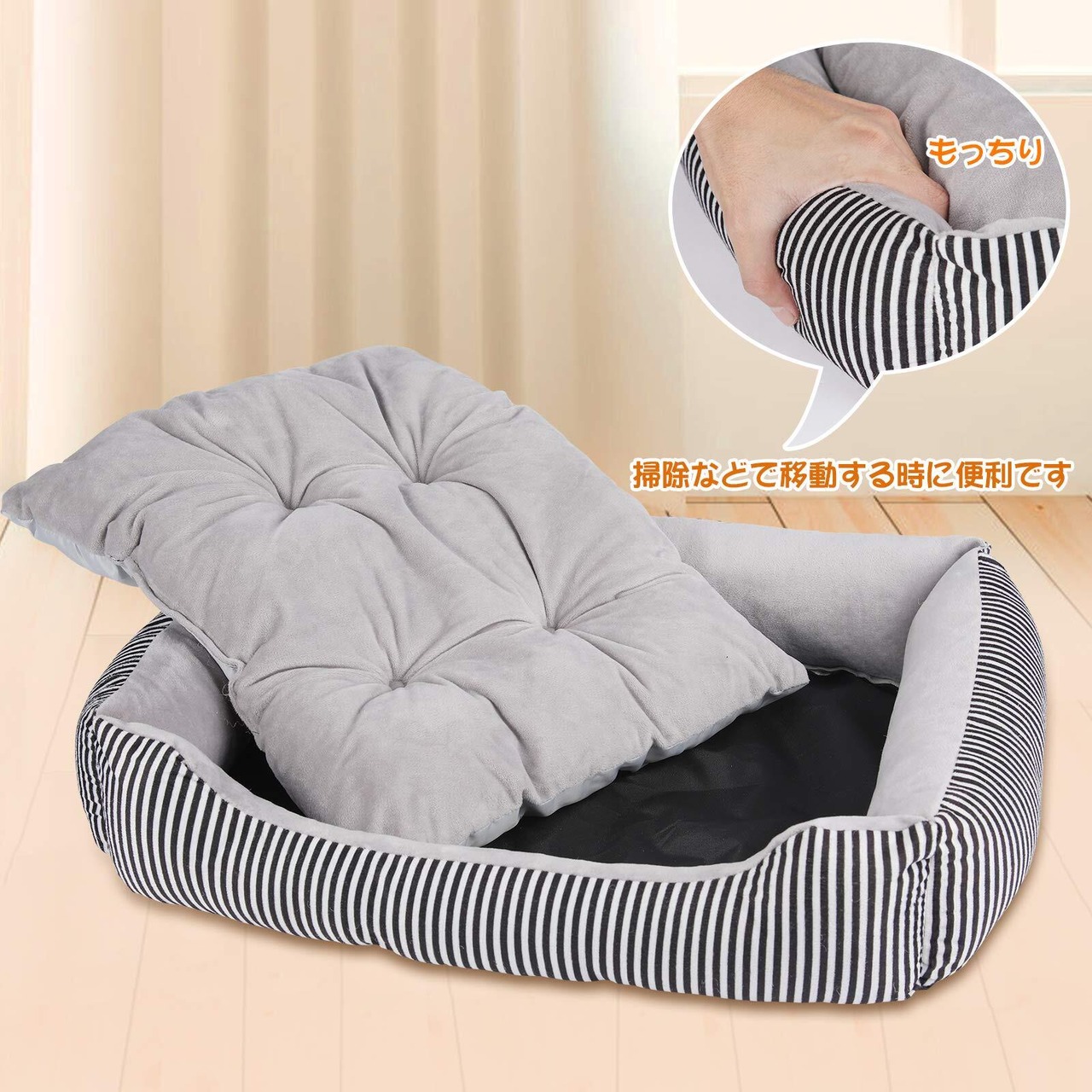 FYB ペットベッド 犬ベッド 猫ベッド クッション ペットソファー マット 滑り止め 通年 丸洗い 小型犬 中型犬 (L 縞模様)