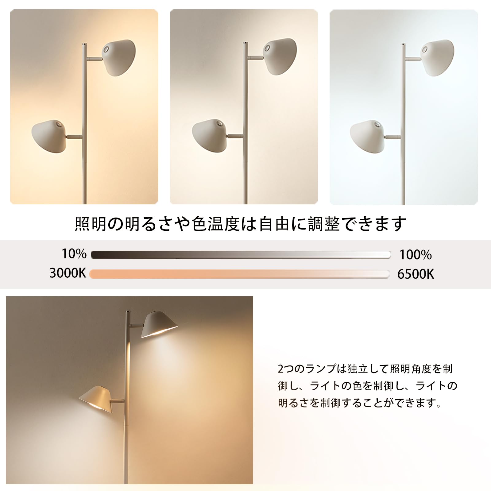 Joyly Home LEDフロアライト、20Wフロアライトリモコン付き、間接照明おしゃれ、調光・調色、タイマー、ダブルヘッドライト+タッチコントロールでスタンド、寝室/リビング/書斎/オフィス向き、ホワイト
