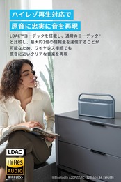 ハイレゾ音源再生にまで対応:LDACコーデックを搭載し、通常のSBCコーデックと比較し、最大約3倍の情報量を送信することが可能なため、ワイヤレス接続でも原音に近いクリアな音楽を再現。