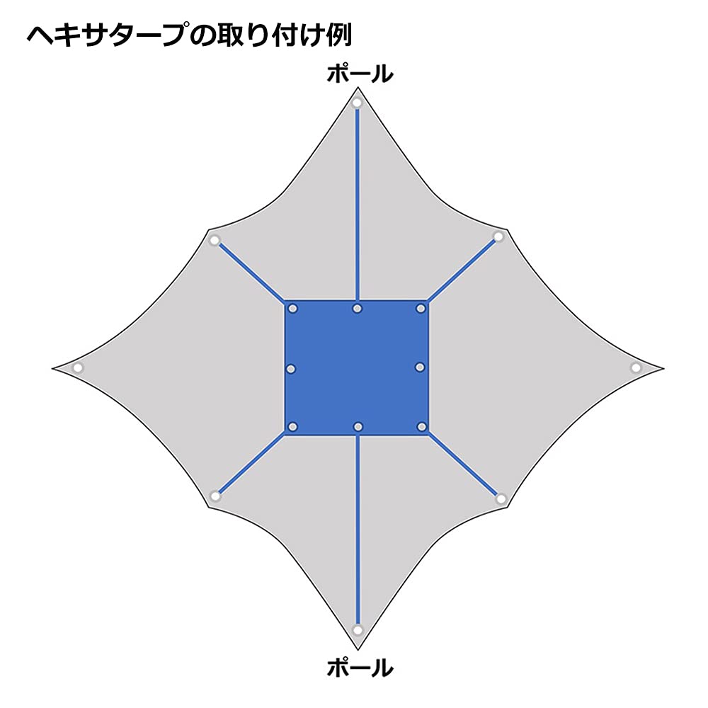 ※ご使用になるタープによっては、ロープの長さが適応しない場合がございます。その際は別途お求めください。