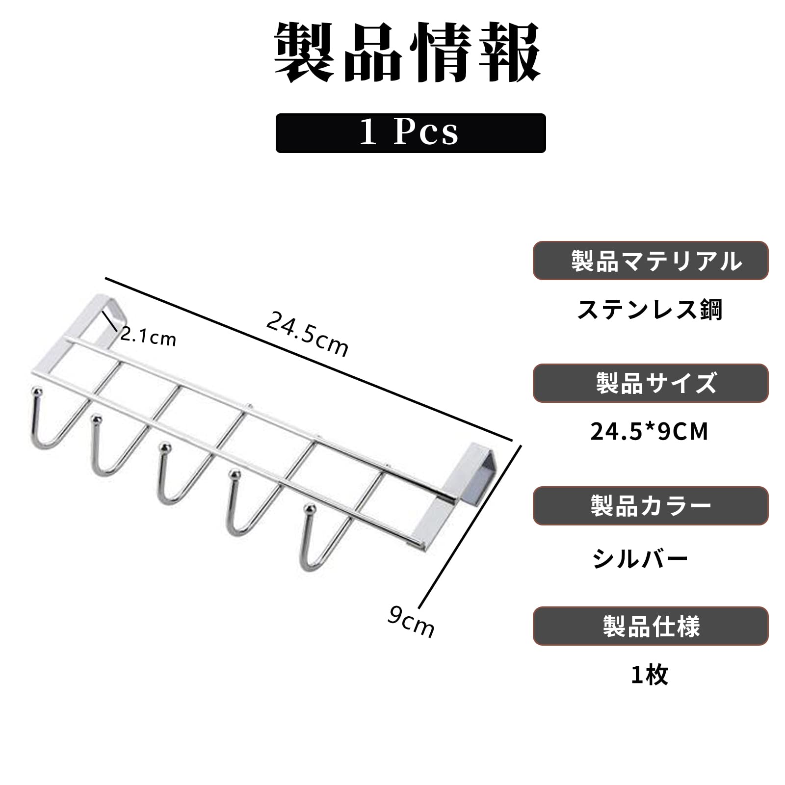 nalaina ドアフック フック キッチンツールフック 5フック ドアハンガー 壁掛けフック キッチン 寝室 浴室 オフィス 多機能収納フック ステンレス 穴をあけない 傷つけない 貼り付け跡なし 収納フック シルバー