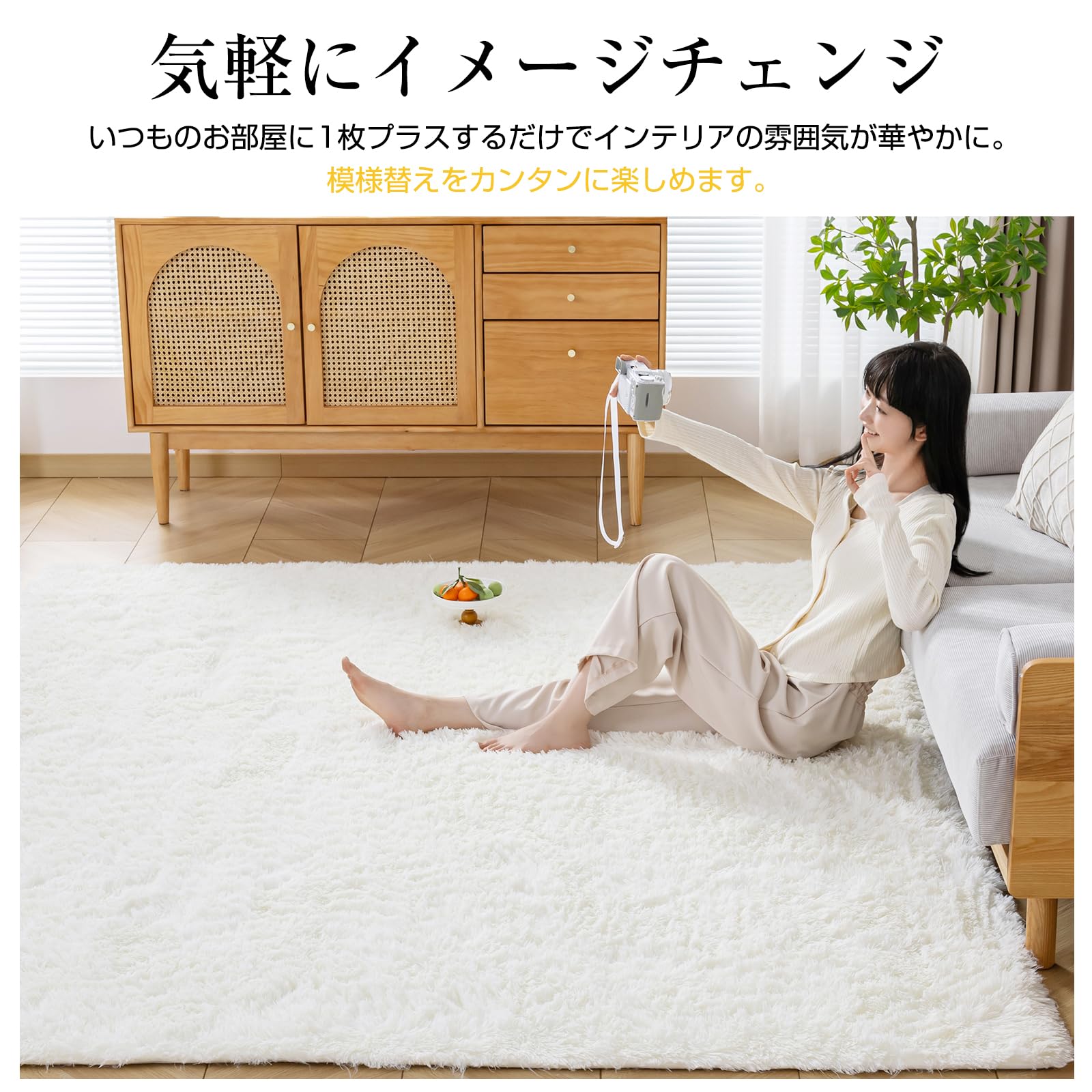 Keusnix ラグ カーペット ラグマット ふわふわ シャギーラグ 185x185cm 絨毯 滑り止め付 洗える 肌触り優しい 防ダニ 抗菌 防臭 オールシーズン快適に使用 床暖房 ホットカーペット対応 ホワイト