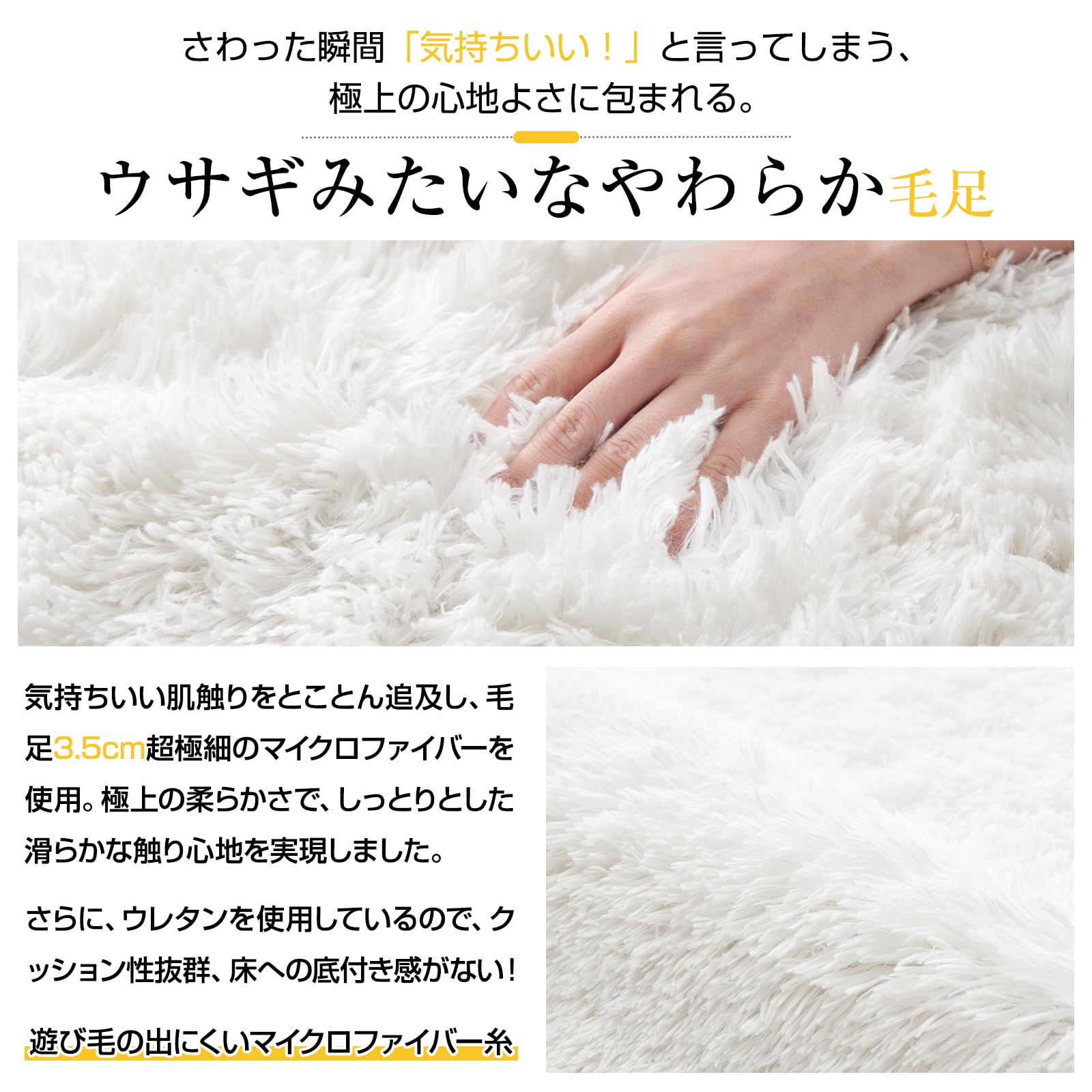 【ふわふわ柔らかな肌触り】カーペット表面の生地は上質なポリエステルを採用し、色褪せず繊細でやわらかな肌触りを実現しました。ふわふわというよりも、しっとりなめらかな触り心地とゴージャスな見た目が魅力。