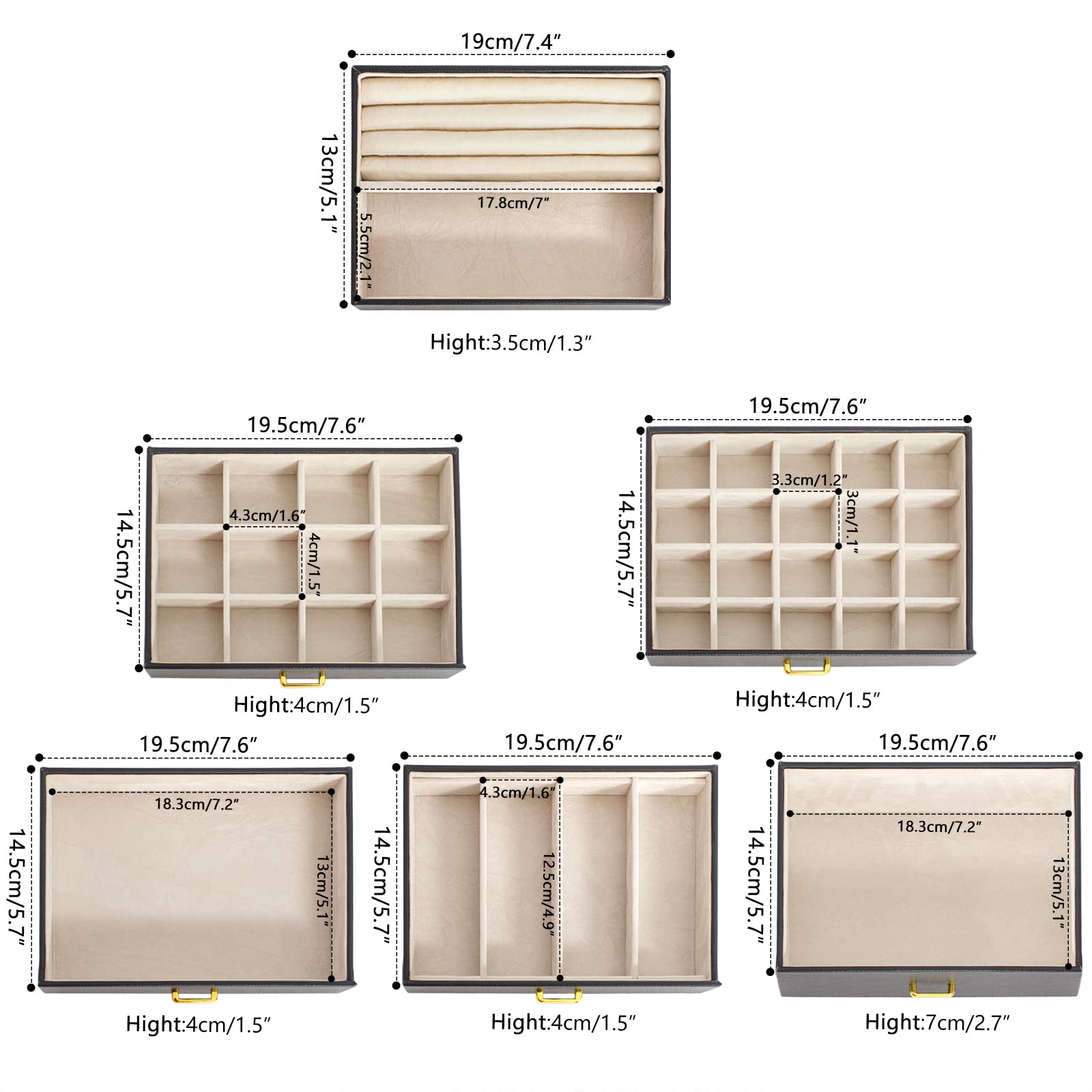 【5つの多用途引き出し引き出しと2つの隠しサイドキャビネットを備えた6層】5つの取り外し可能な引き出しの2つの深い底には、コンパートメントが1つだけあります。引き出し1:同じサイズのスロットが20個あります。引き出し2:同じサイズのスロットが12個あります。引き出し3: 4つの等しいサイズのスロットがあります。 8つのフックと2つのポケットを含む2つのスイングアウトキャビネットは、ネックレスが絡まるのを防ぎます。