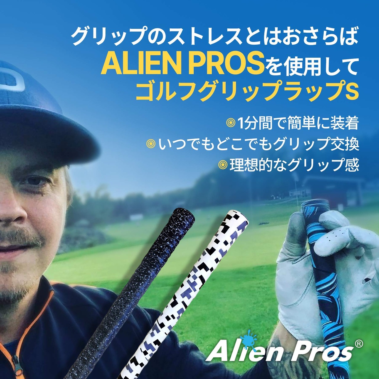 Alien Pros ゴルフラッピングテープ(3/6/12/24個セット) - 革新的なゴルフクラブグリップソリューション-1分以内に、新しいグリップに生まれ変わります