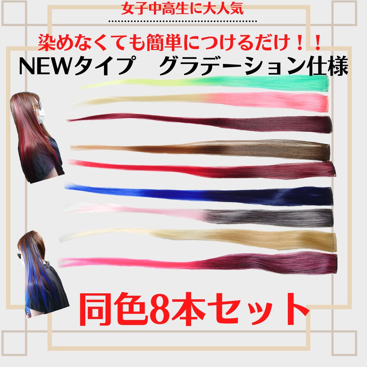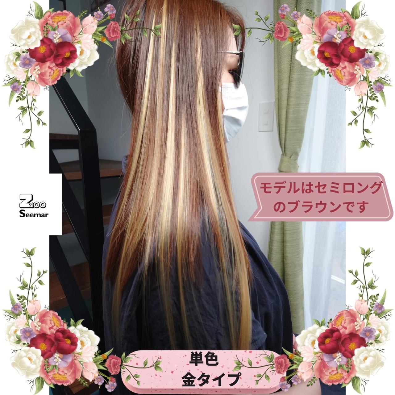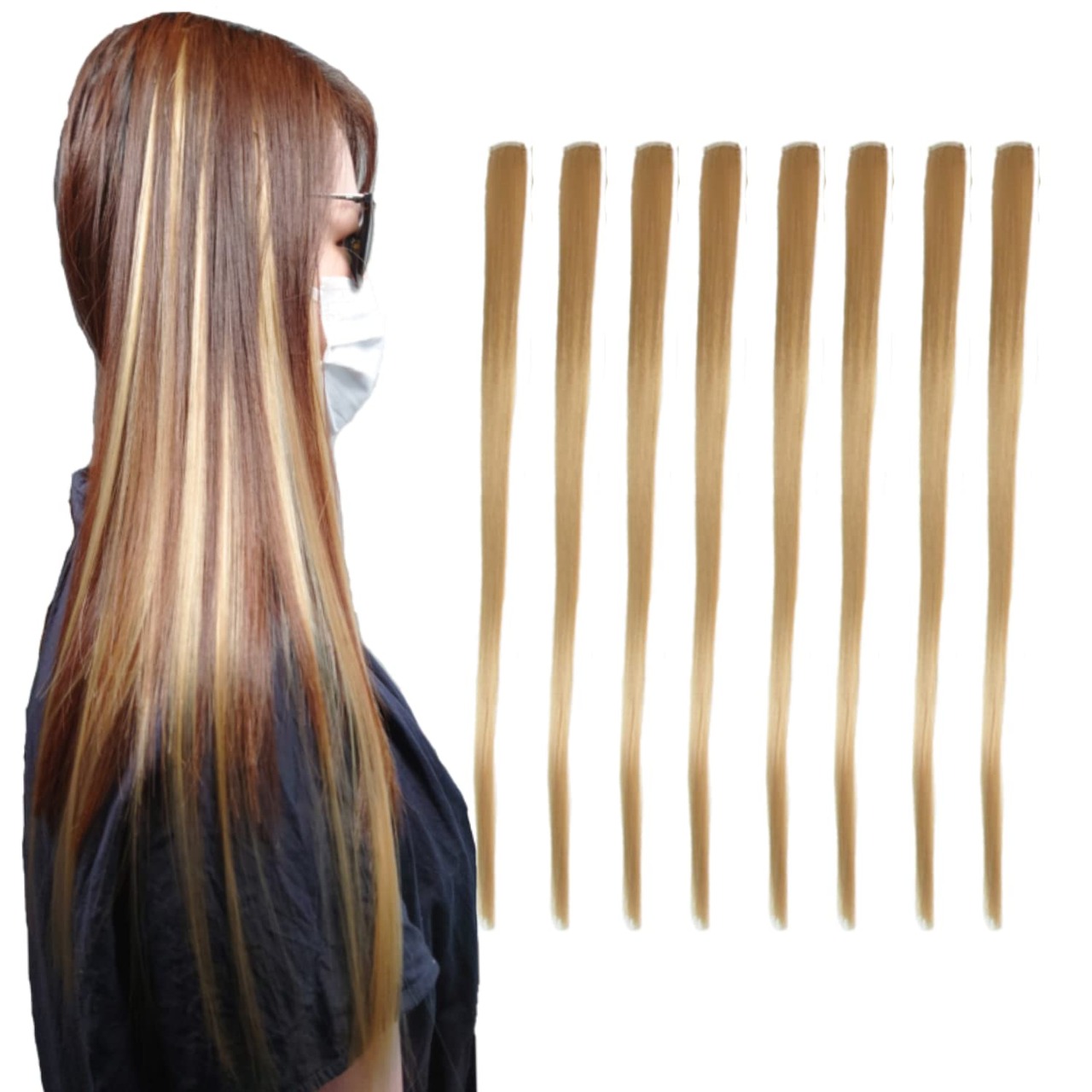 エクステ ワンタッチ 8本セット ストレート グラデーション ポニーテール メッシュ クリップ ロング (金)