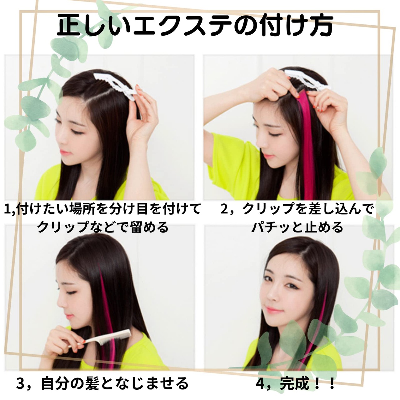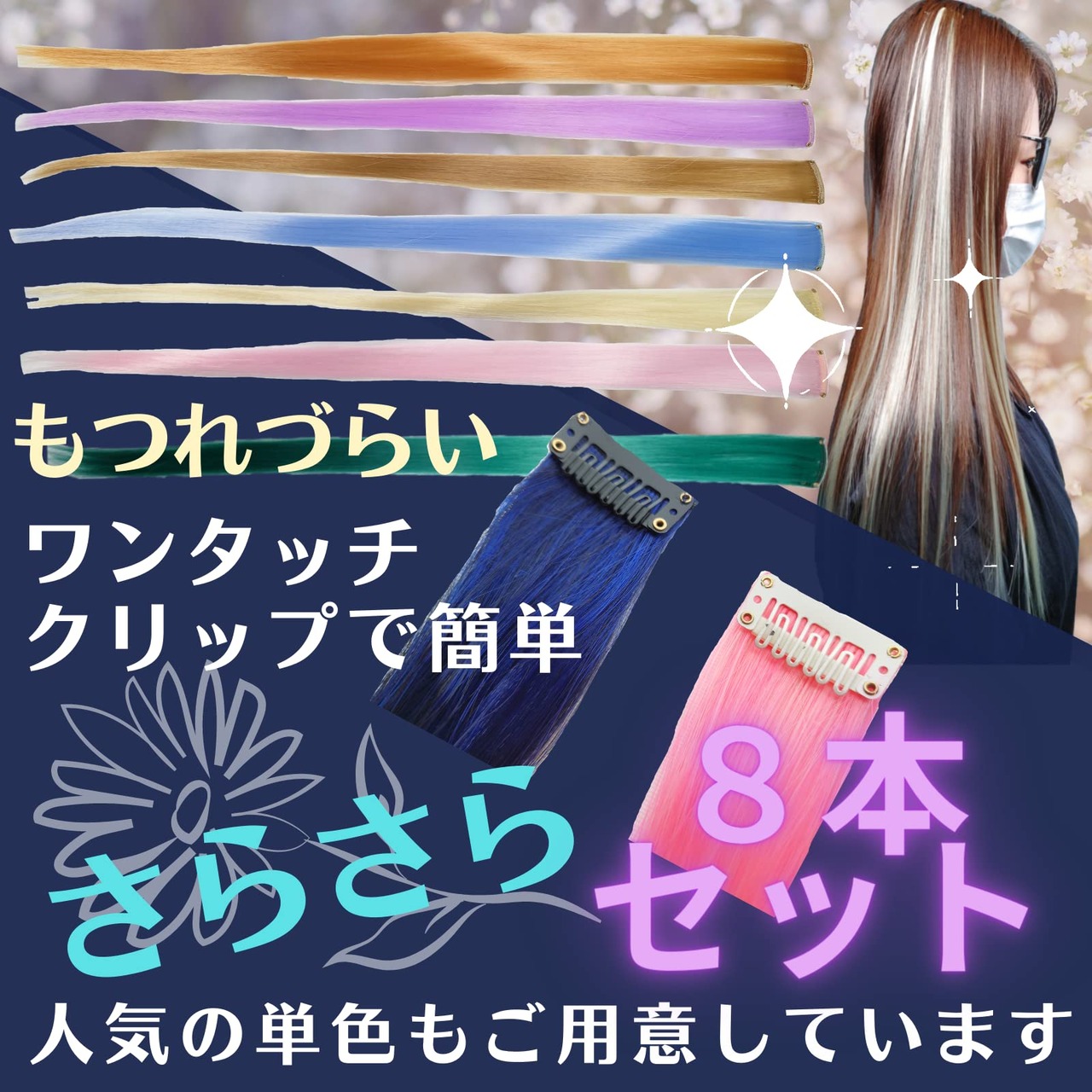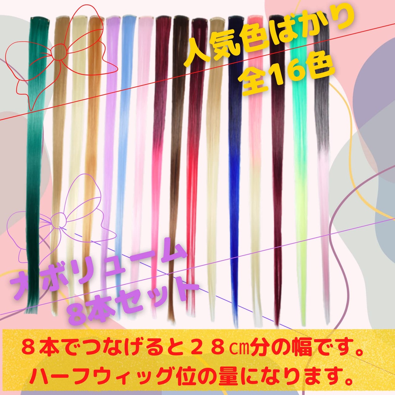 エクステ ワンタッチ 8本セット ストレート グラデーション ポニーテール メッシュ クリップ ロング (金)