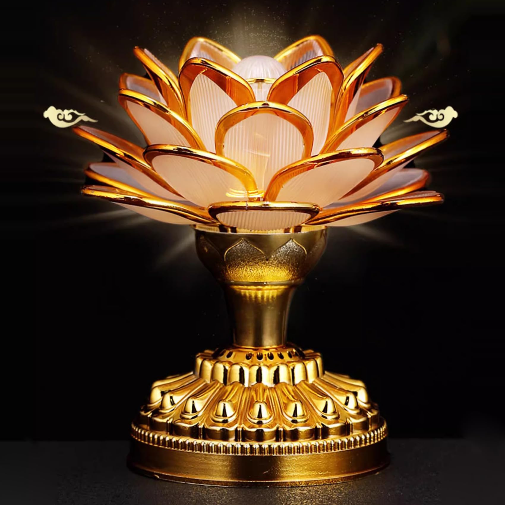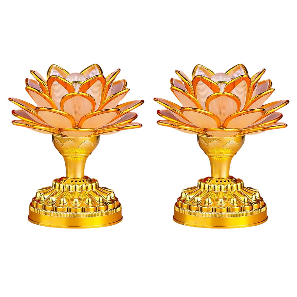 RAYWILL 蓮花 仏花 蓮の花 仏具 ロータス 蓮 造花 LED 7色変化 2個セット 2WAY給電対応 USB・電池 はすはな 仏壇 仏具 仏前 法事 法要 お盆 命日 飾り 照明一対 (Golden(新型球なし))