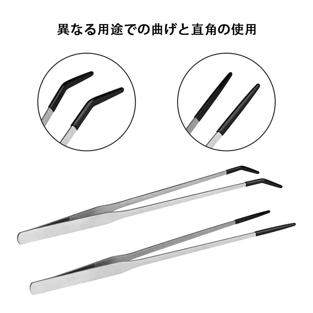 XIANFQNKJ 爬虫類用ゴムチップ付きステンレススチールピンセット2本セット(直型&曲型)、頑丈でエクストラロング、27cm、プラスチック製トングとの併用可能、テラリウム・水槽・クラフト用 | geisha Cat*