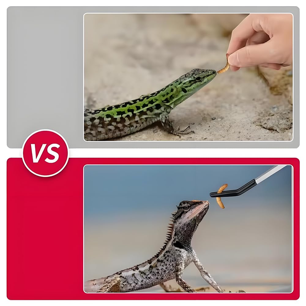 3.【便利な超ロング設計】約27cmの長さで、大型の水槽やテラリウムでも手を濡らさずに餌やりが可能。トカゲ、ヘビ、カメなどの飼育に最適です