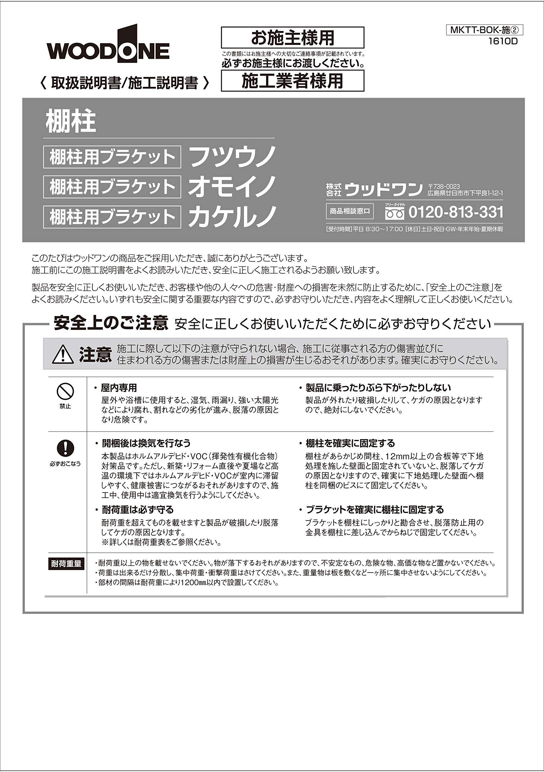 ウッドワン カナモノ フツウノ ブラック 棚板奥行き250・300mm用ブラケット 左右セット MKTTBS-2D-K
