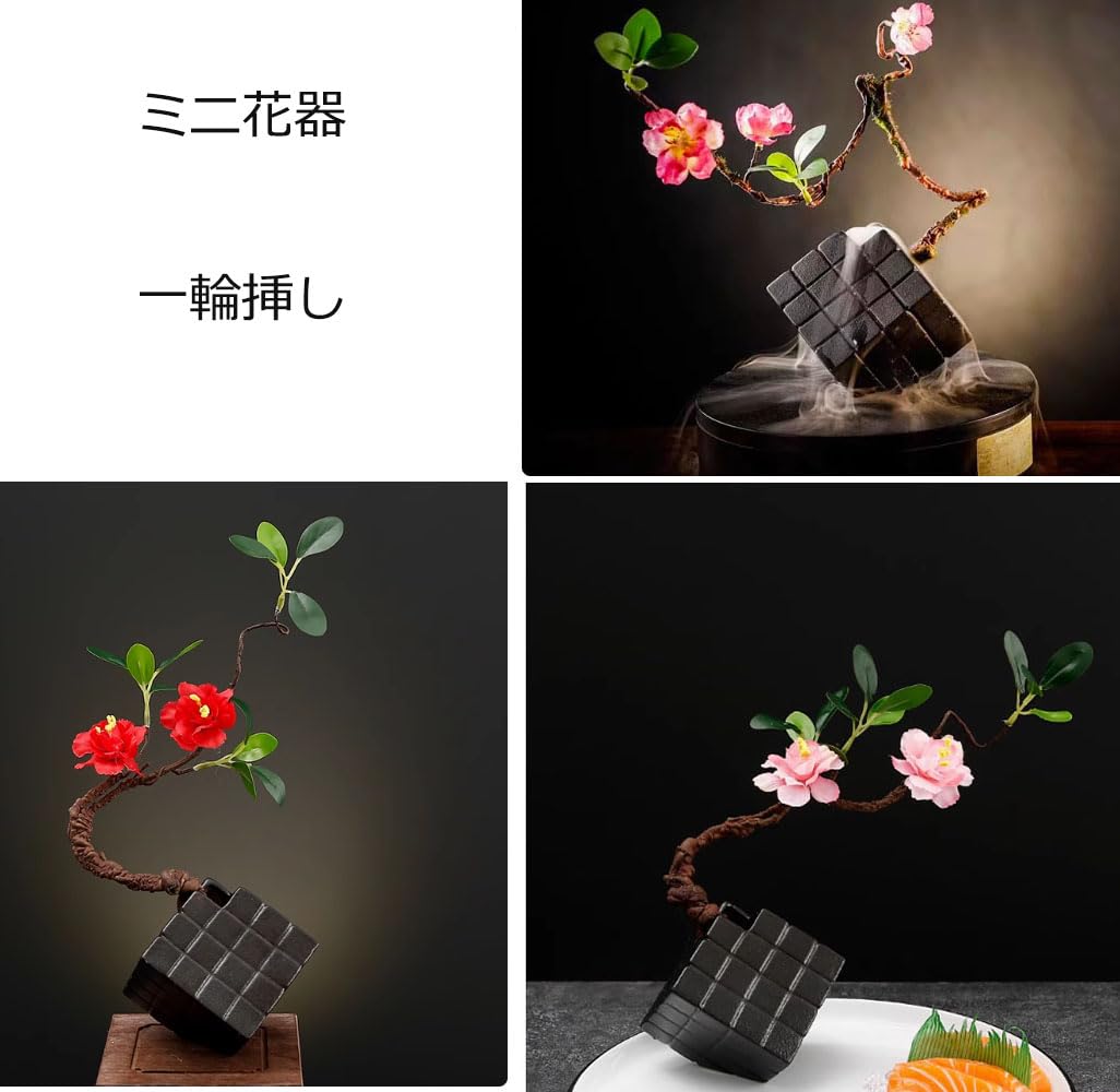 サイズ:本体のサイズは7cm×7cm×7cm ※立方体を斜めにした最大サイズ約2.8×9.3×10.5cm 予め御容赦くださいませ。重量:約215g 素材:セラミックス 品のある一輪挿しです。 仏壇に生花を入れて飾ってみましょう。