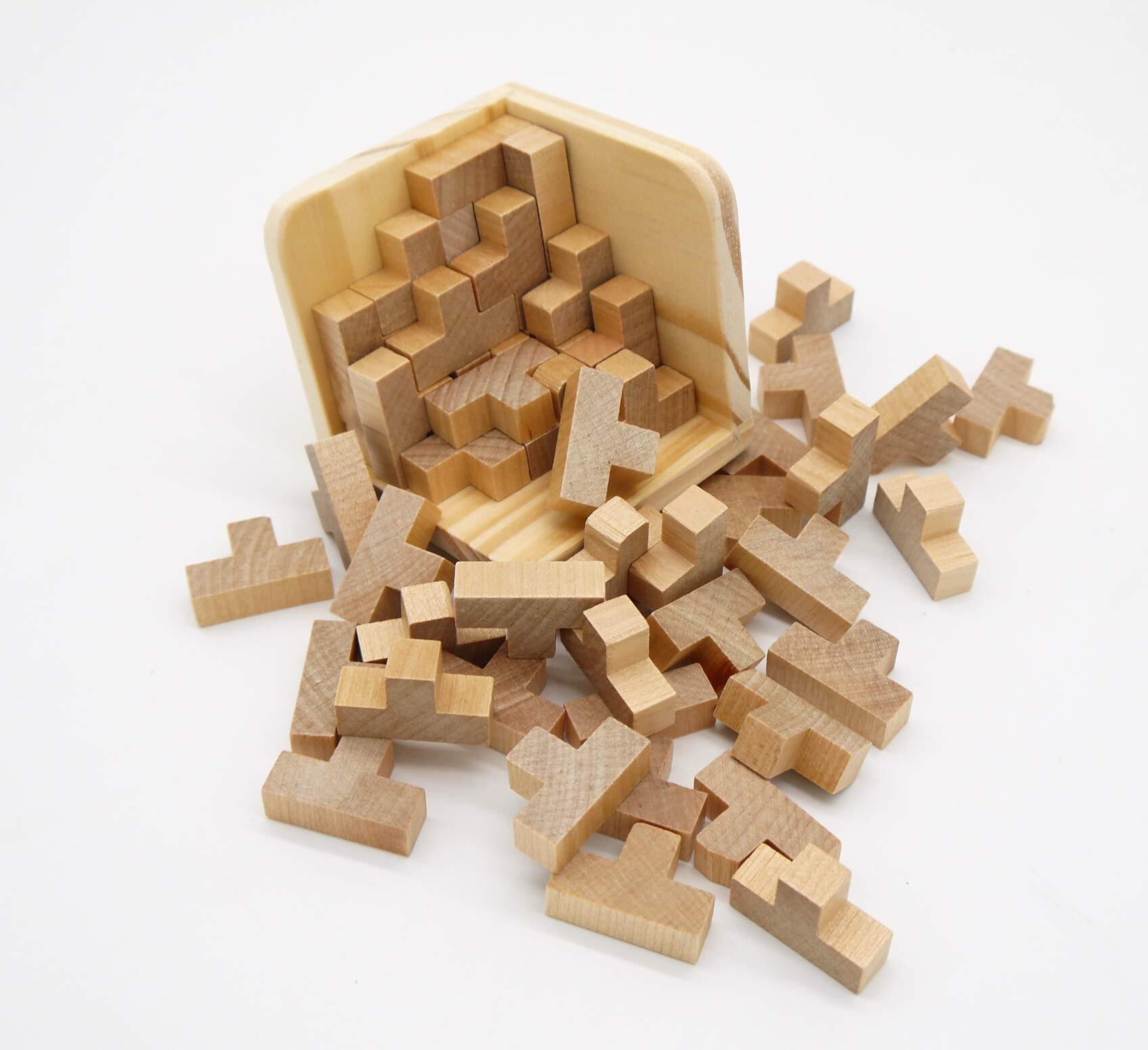正直屋 テトリス キューブパズル 木製パズル テトリスパズル puzzle 立体パズル 3d立体パズル ゲーム 大人向け 難しい 脳トレ T型 54個の組み合わせ パズル