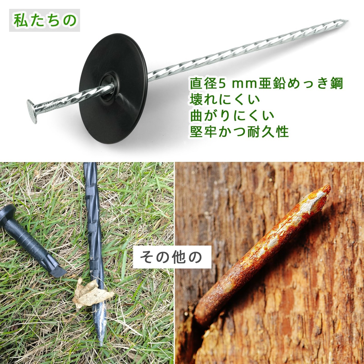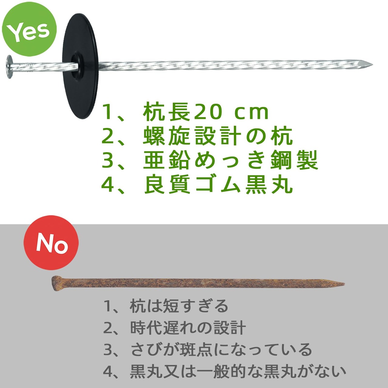 材質:螺旋釘杭は亜鉛めっき鋼で作られ、黒丸は耐久性のあるゴムで作られている。
