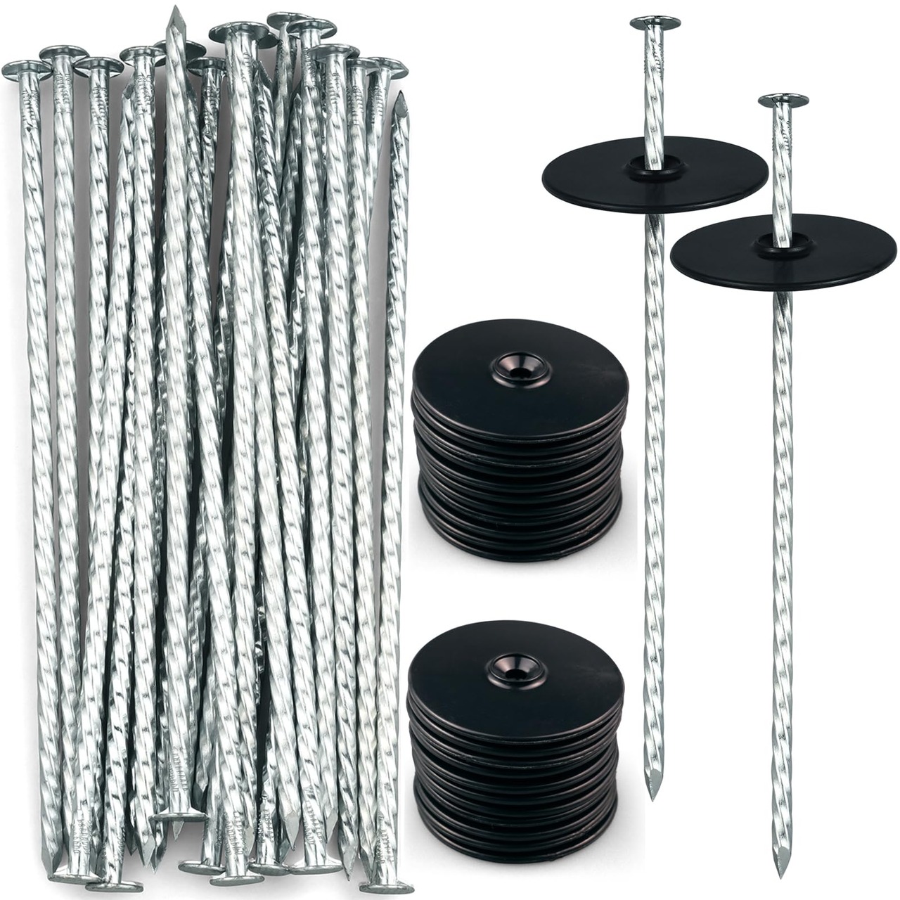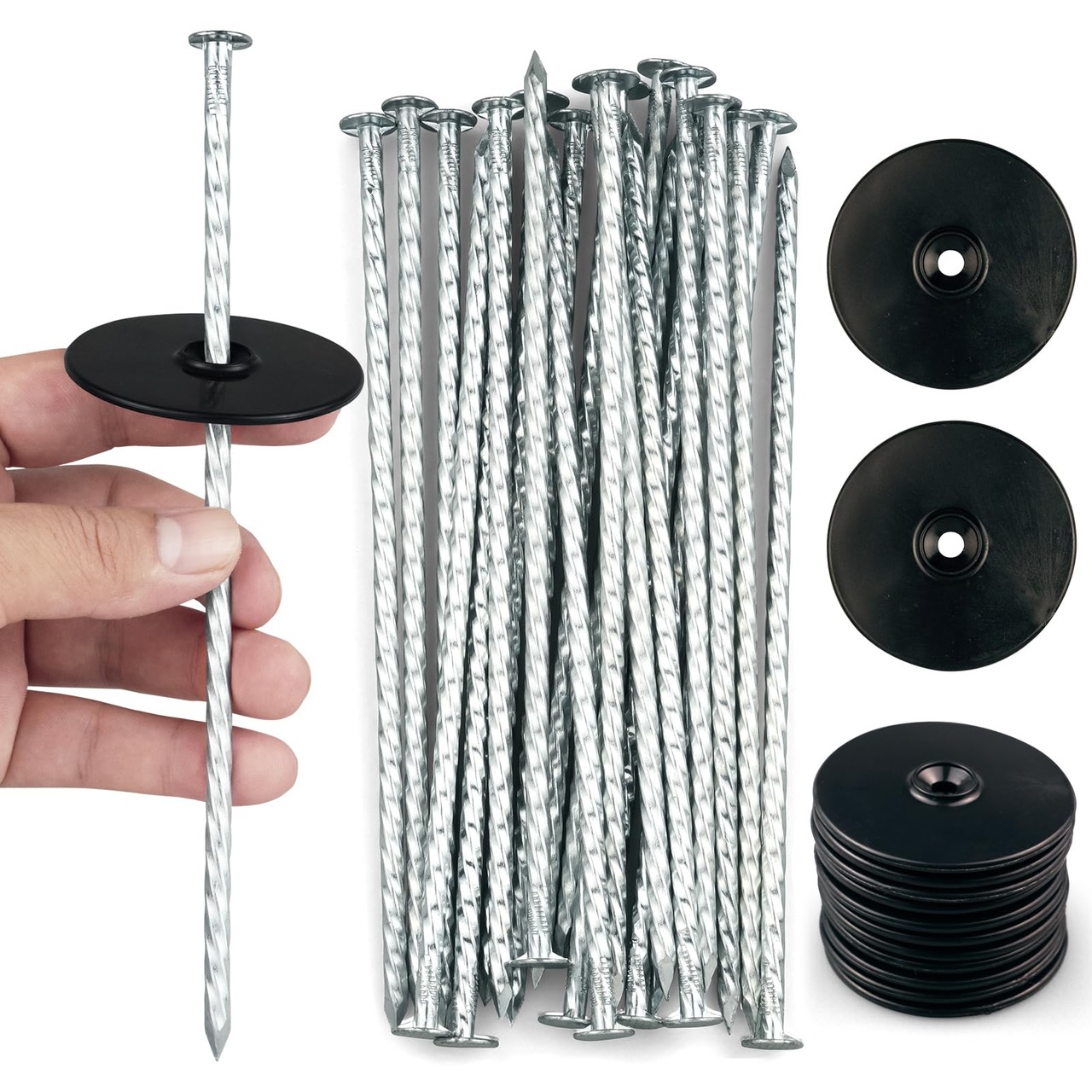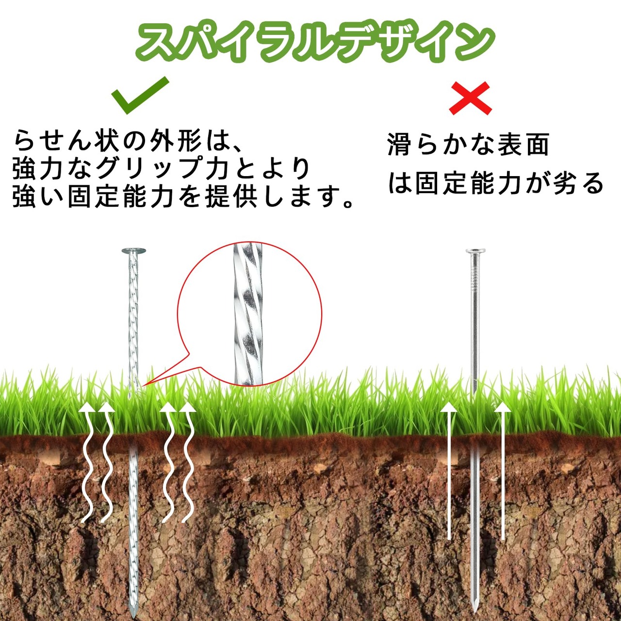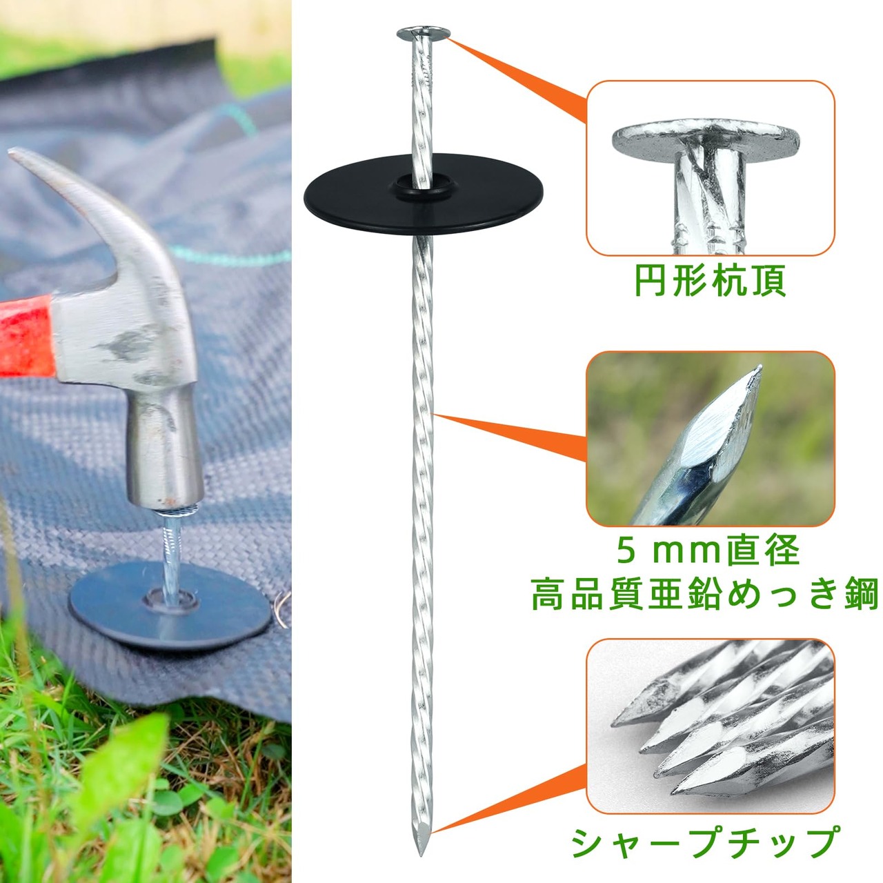 【セット内容】螺旋釘杭:縦20センチx横1.2センチx直径約5ミリ、釘杭数量:100個。黒丸100個と作業用手袋1組も入っています